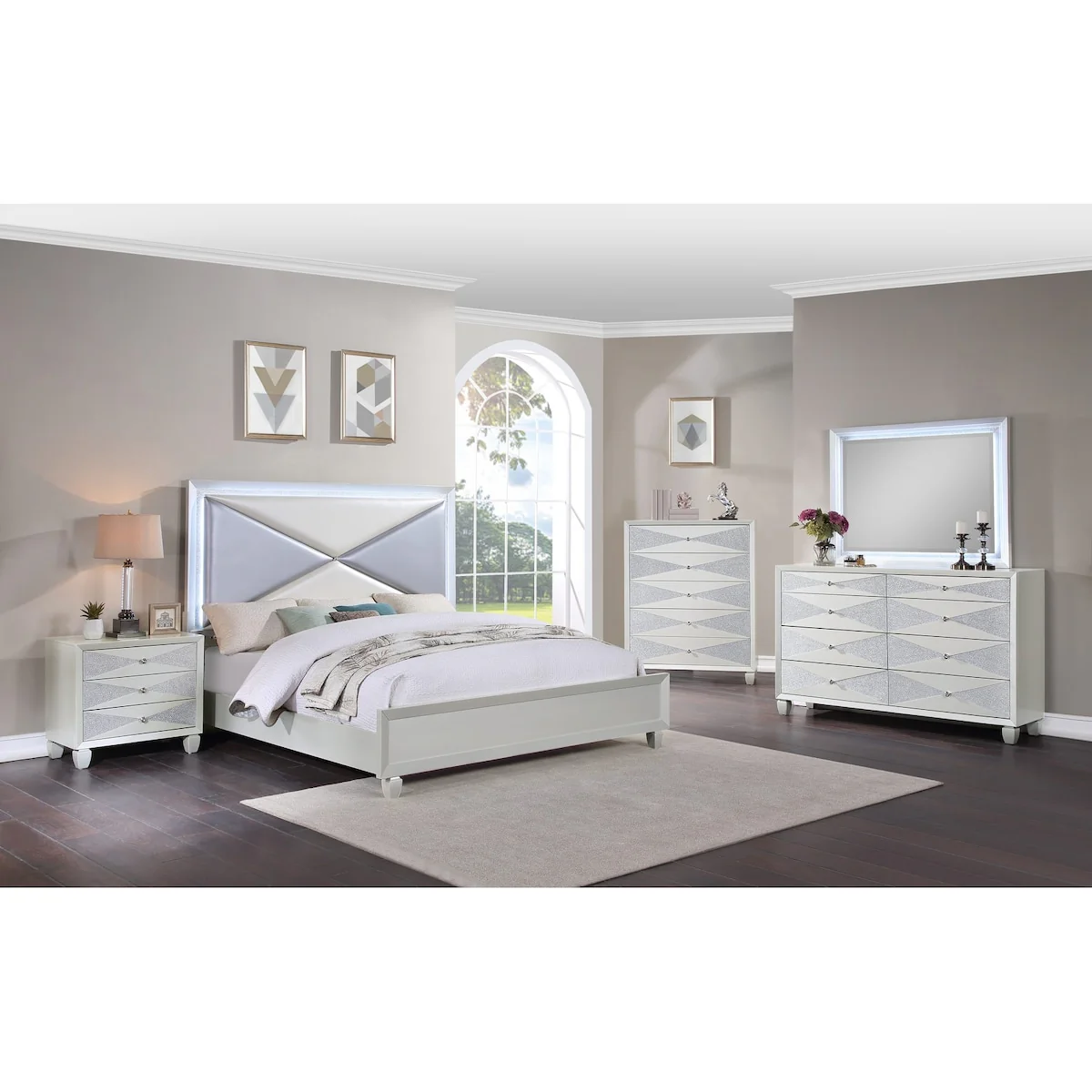 Somette 4-piece Mehdi Gloss White/Grey Queen-size Bedroom Set