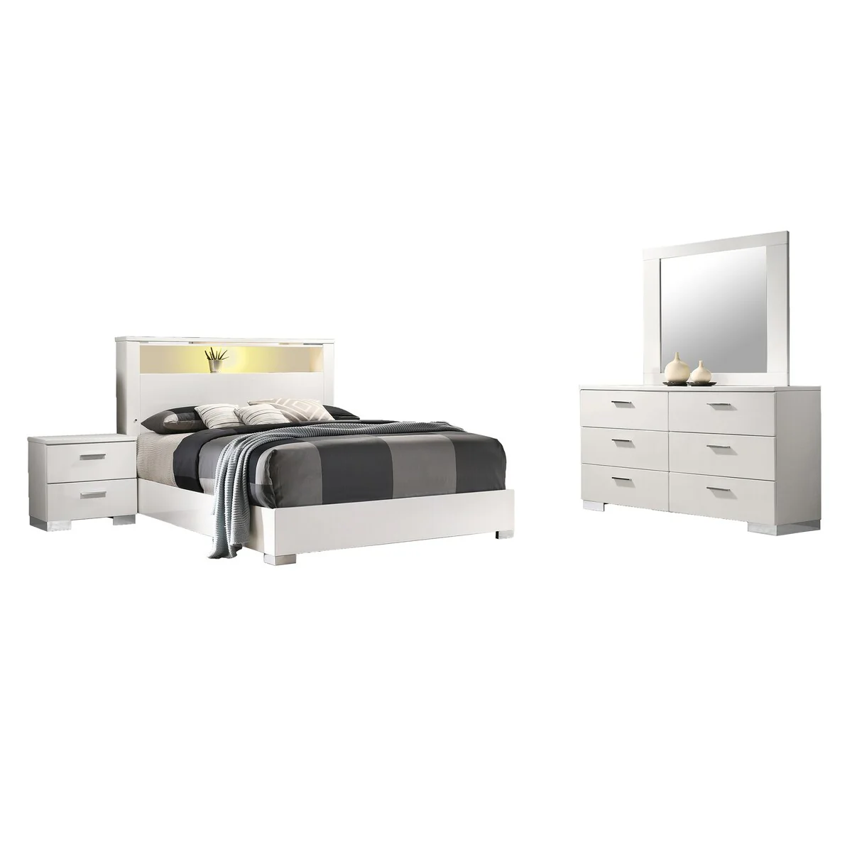 Best Quality Furniture Rose White 4 Piece LED Bedroom Set
