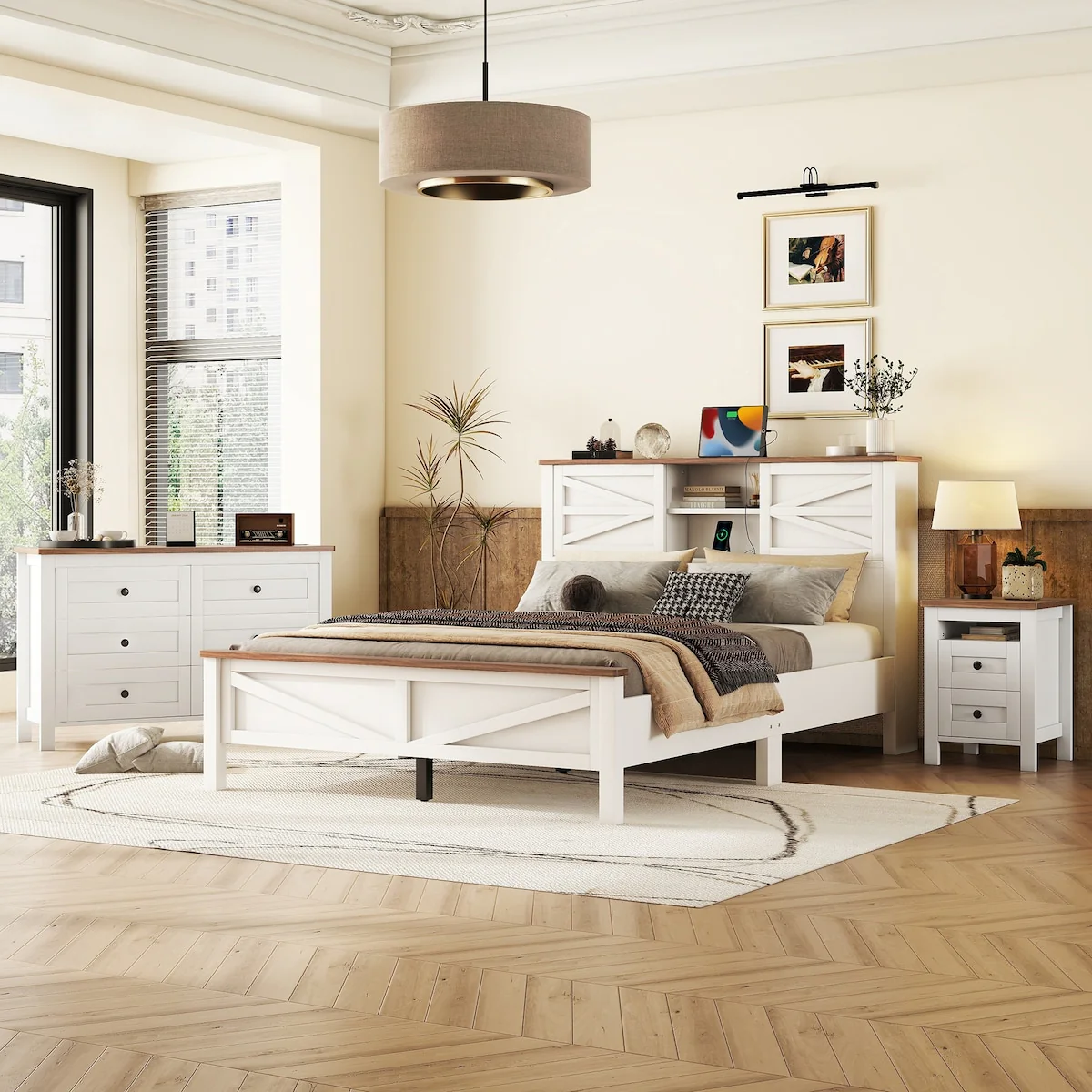 3-Pieces Full Bedroom Sets with Nightstand and Dresser