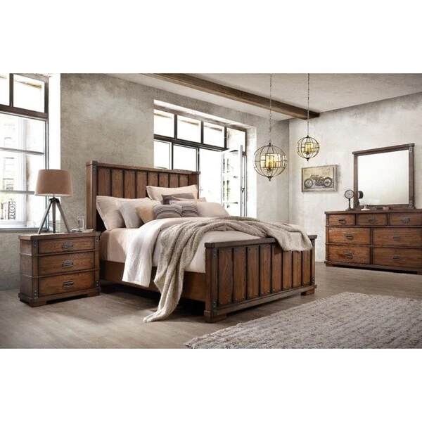 Abbyson Kingsley Vintage Oak Wood 5 Piece Bedroom Set