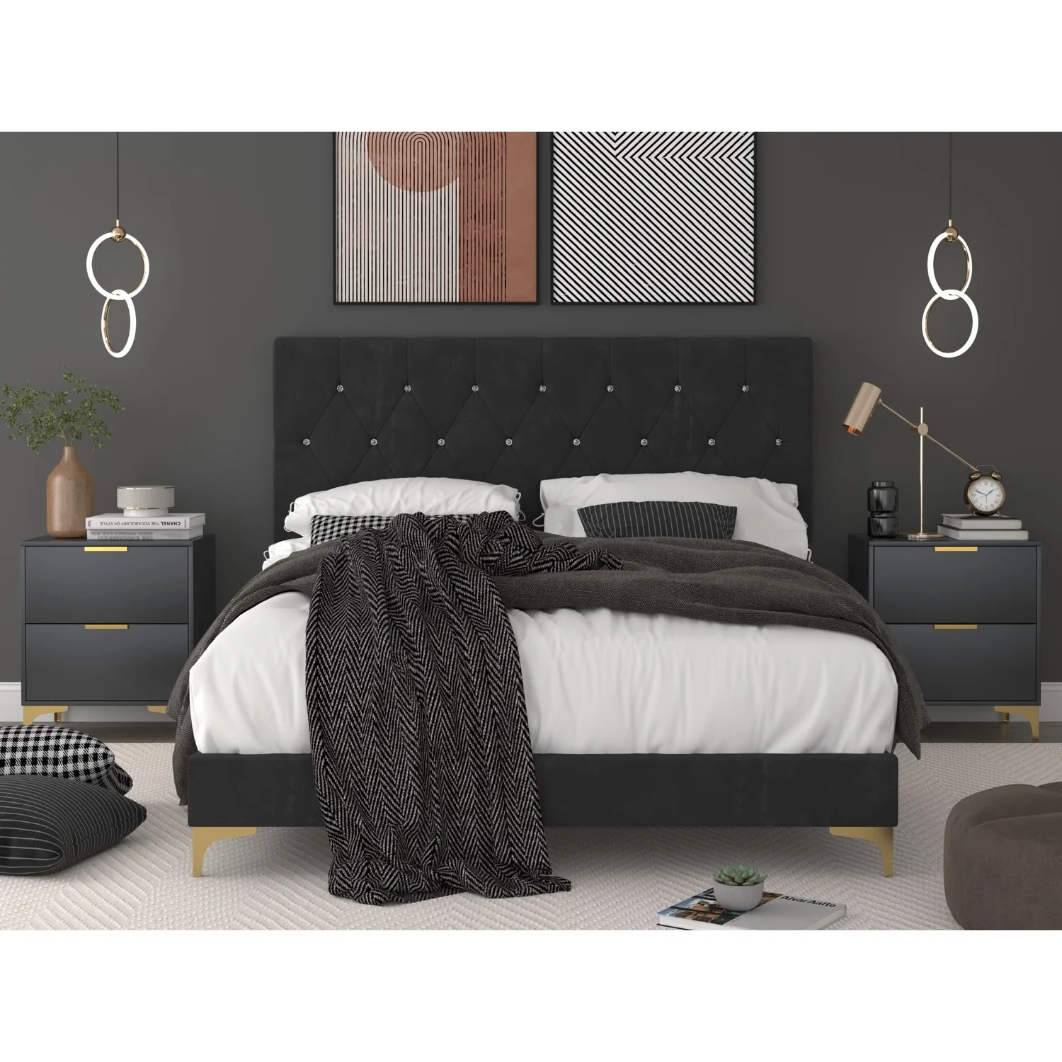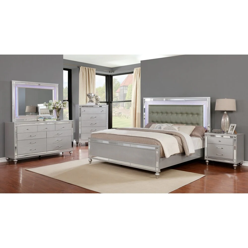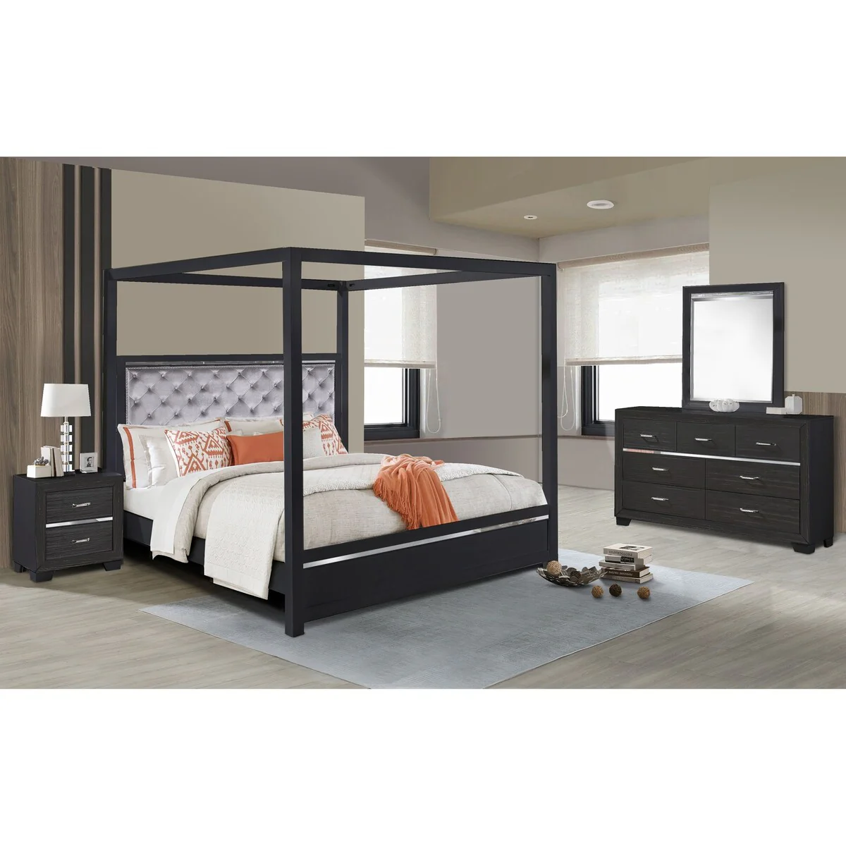 Canopy Glam Queen Bedroom Set with Tufted Headboard & LED Lights