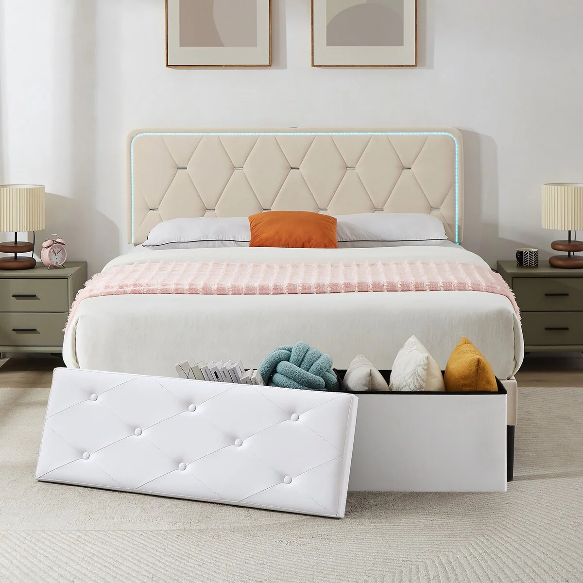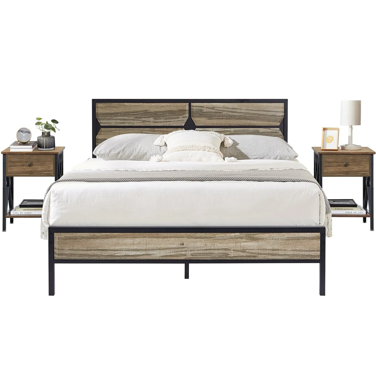 Taomika 3-Pieces Modern Bed Frame and Modern Nightstand Set