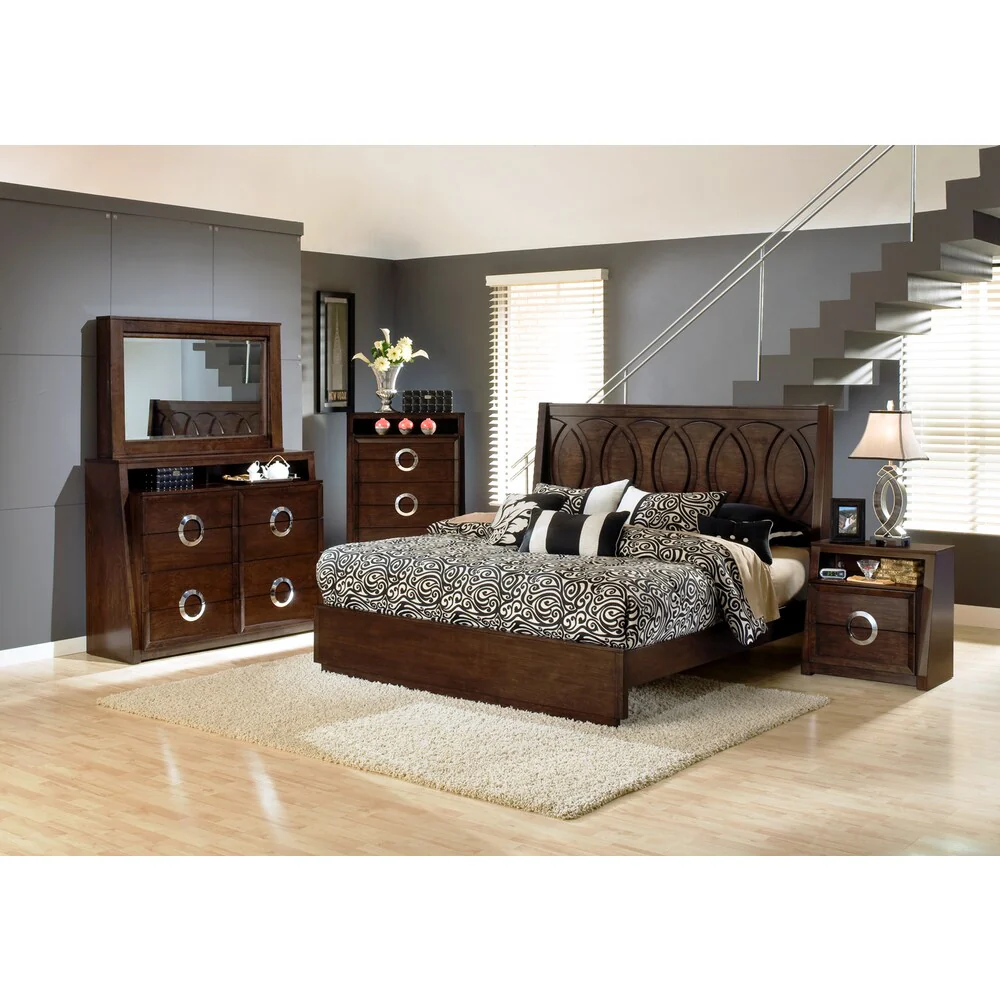 Abbyson Kingston 4-piece Walnut Sleigh Bedroom Set
