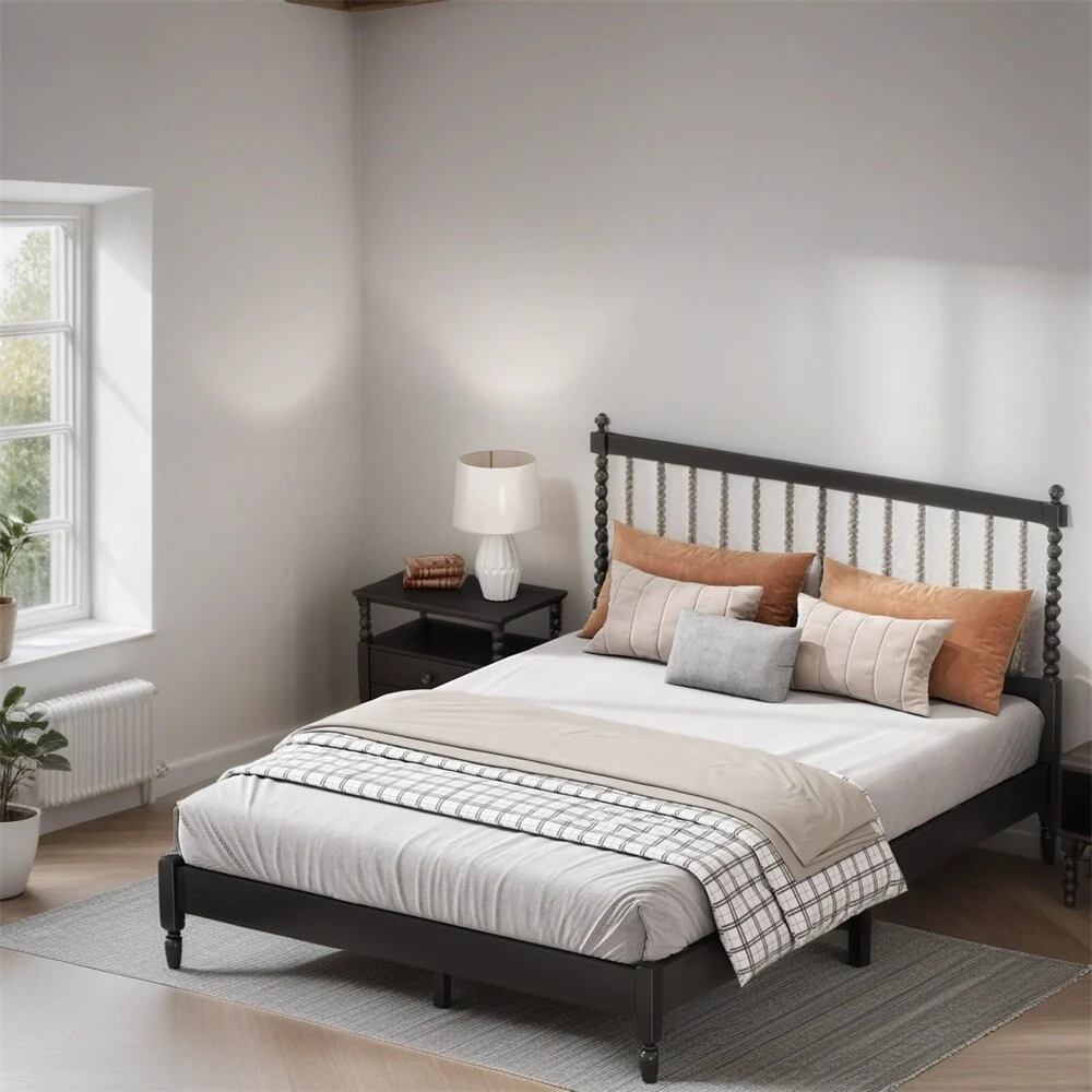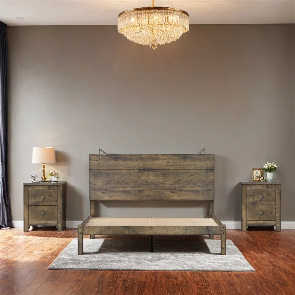 King Size Wood Platform Bed with 2 Nightstands(Set of 3)