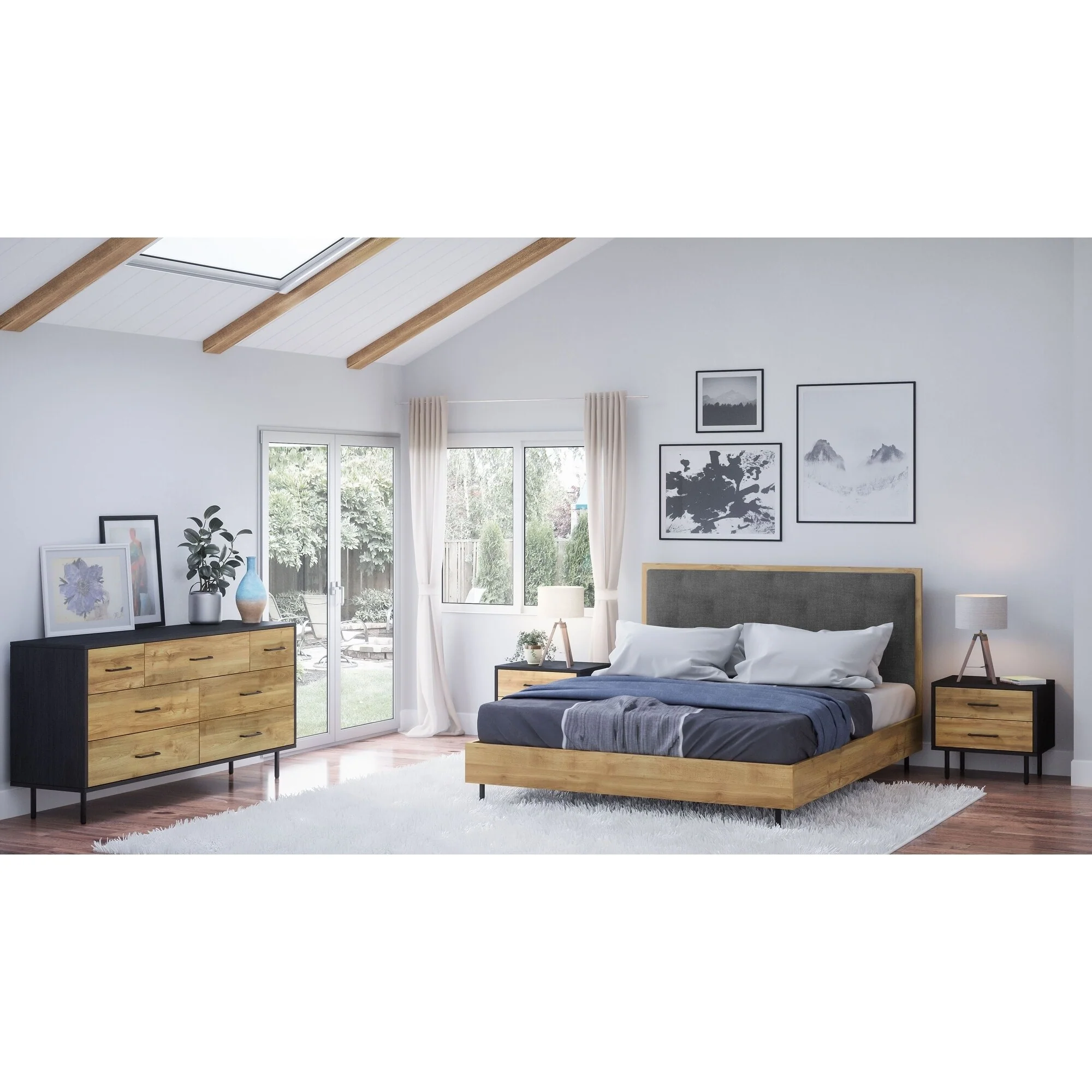 3-Pieces Queen Bedroom Sets With Nightstand and Dresser