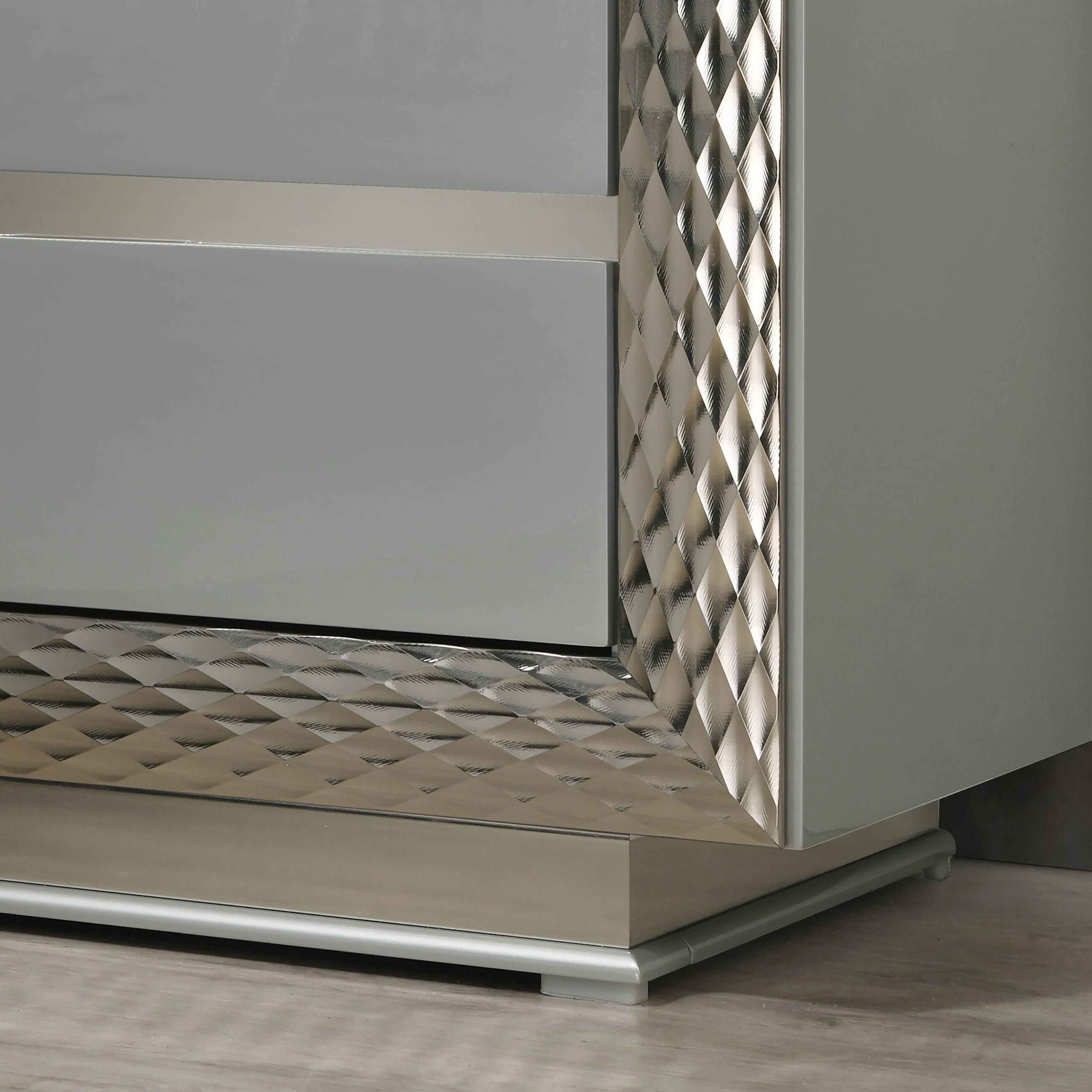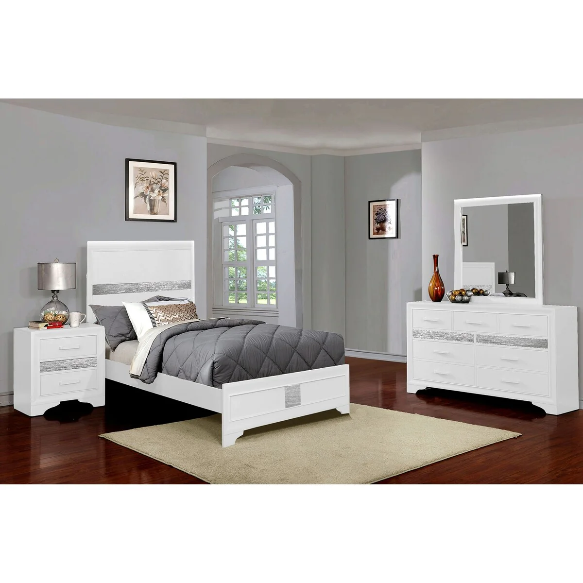 Aurora Modern White Bedroom Set with Brushed Metal Inlay