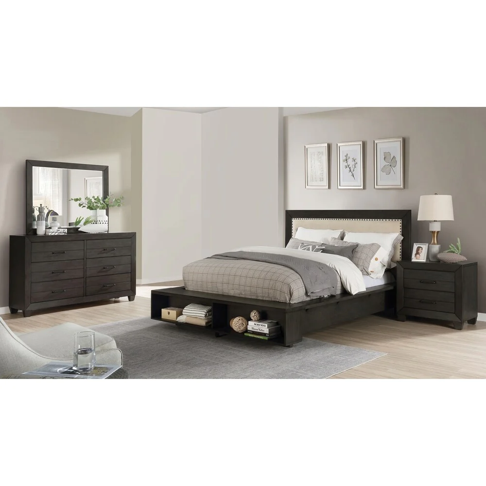 Grayish Brown Master Bedroom Set 6pcs Platform Storage Bed