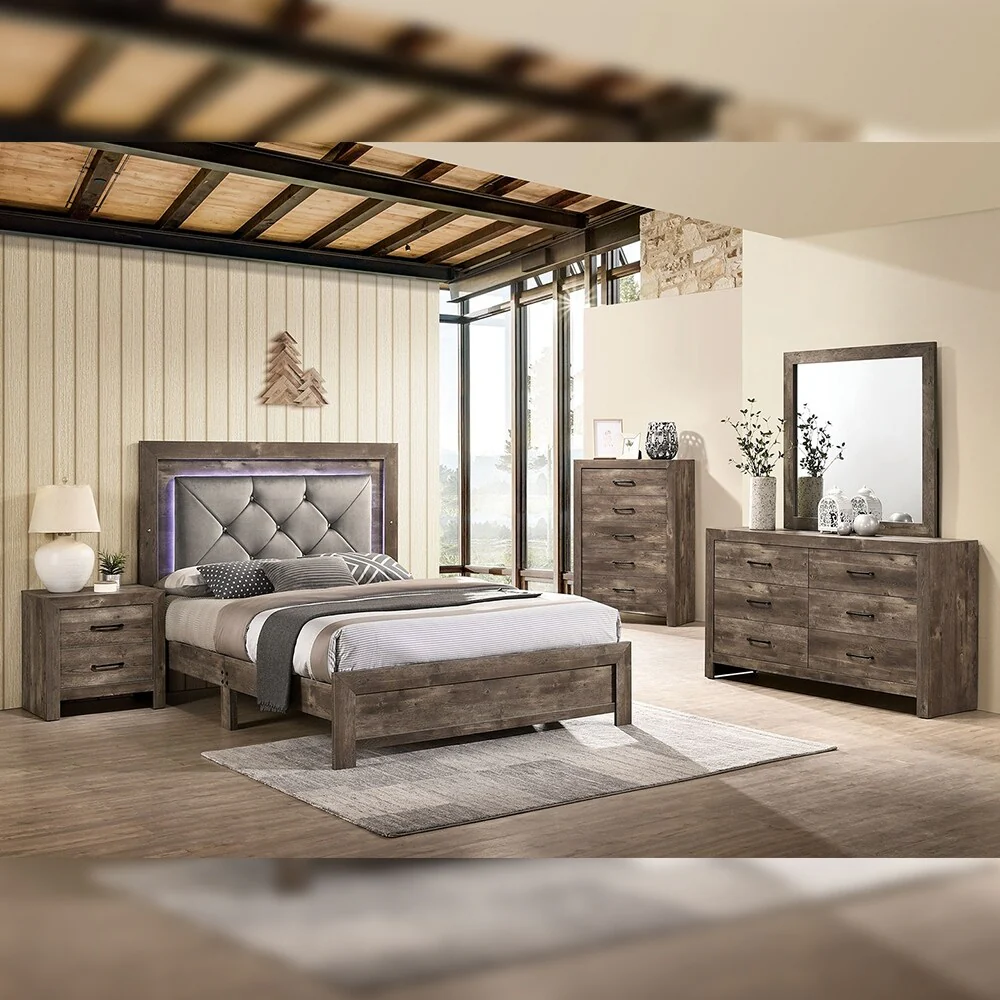 Agius Rustic Pine 4-piecePanel Bedroom Set