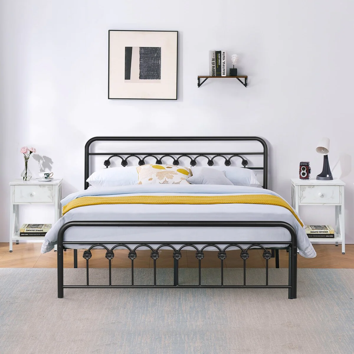 Nestfair Twin Bed with Headboard and Footboard,with a Nightstand
