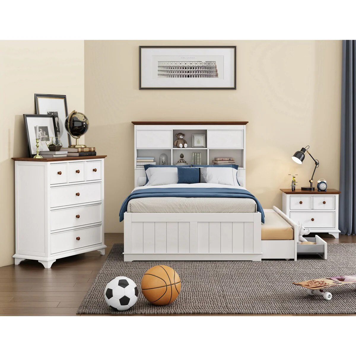 3 Pieces Captain Bedroom Set with Nightstand and Chest