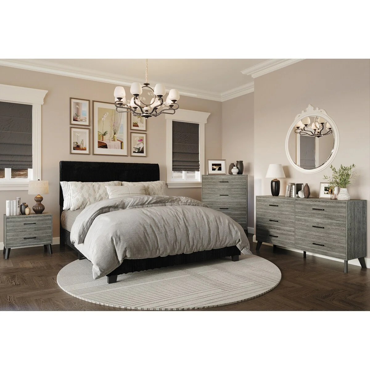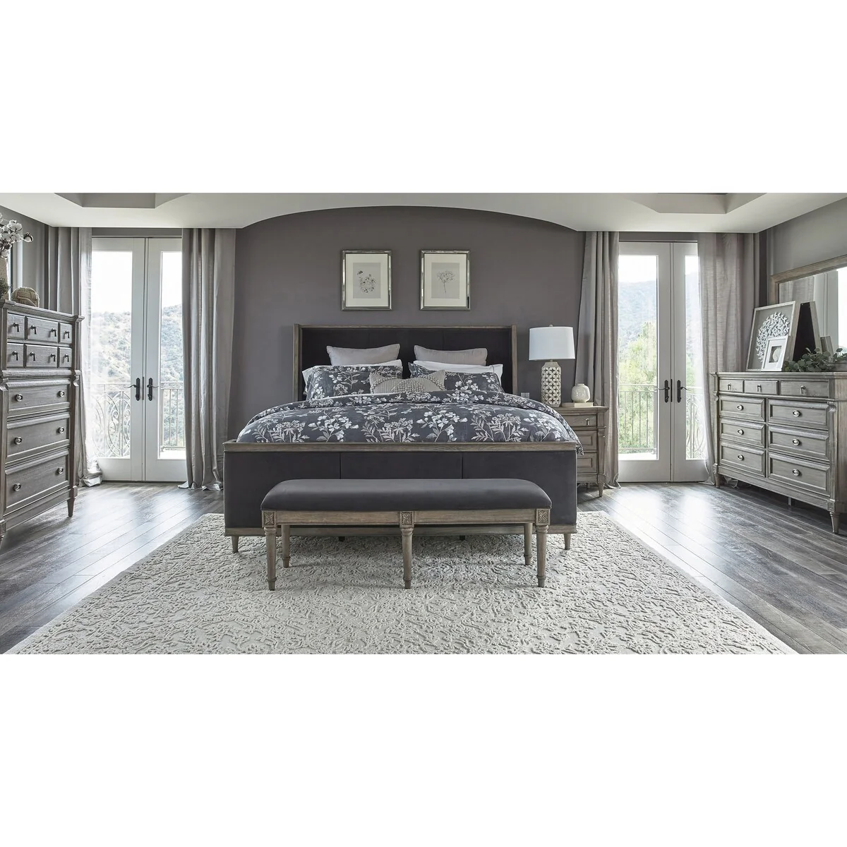 Abbyson Cindi 4 Piece Grey Bedroom Set with Sleigh Bed
