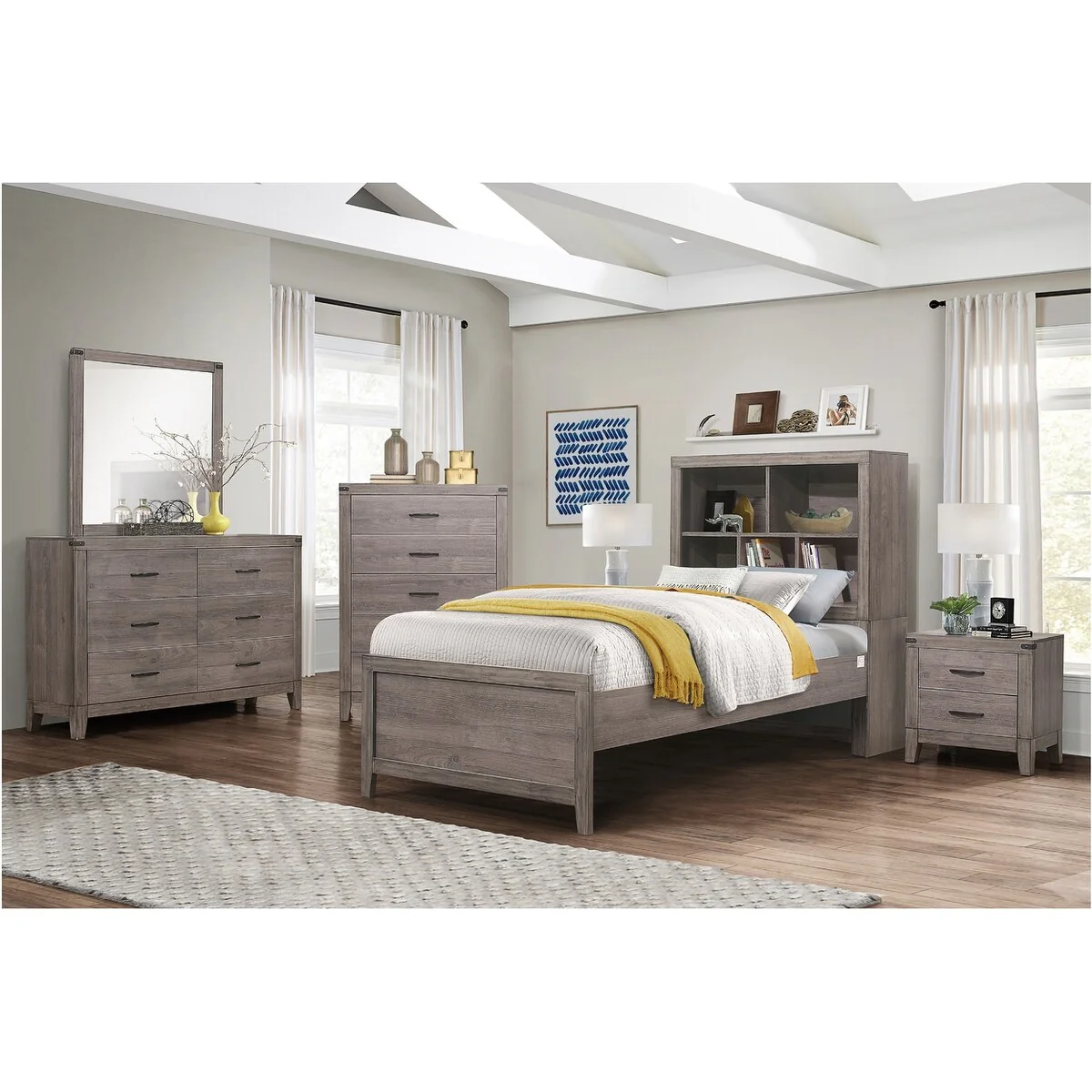 Sidney 5 Piece Gray Bookcase Storage Panel Bedroom Set