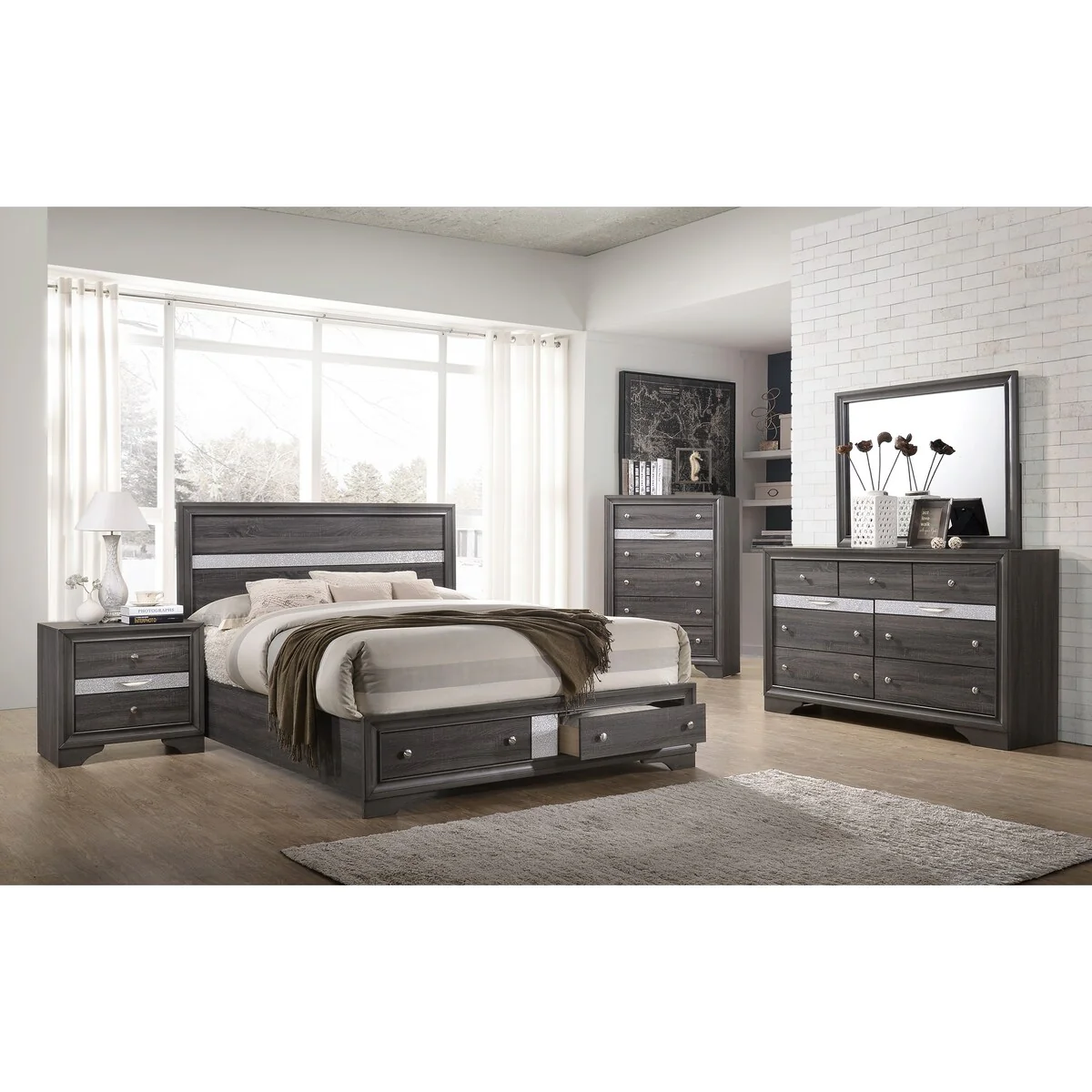 Bambie 4 Piece Gray Silver Storage Platform Bedroom Set
