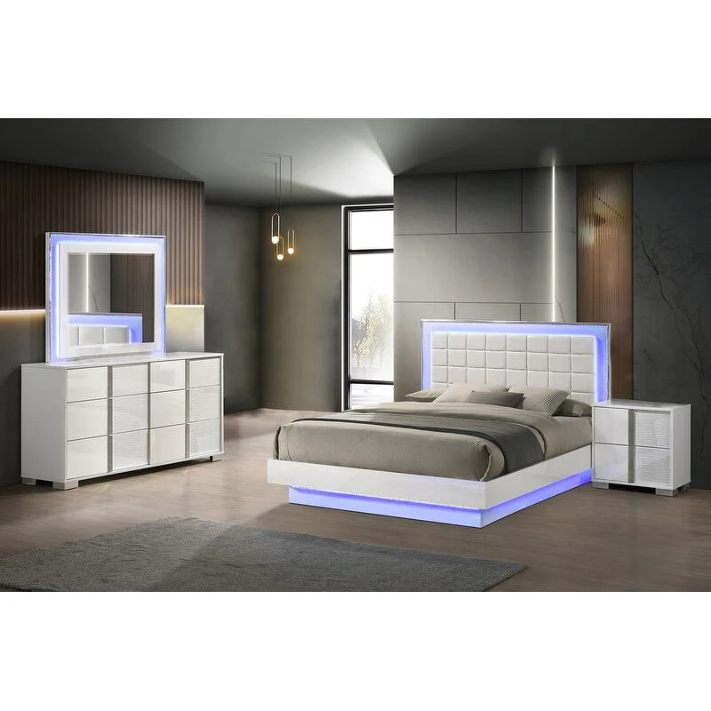Best Quality Furniture B750 White Lacquer with LED Bedroom Set