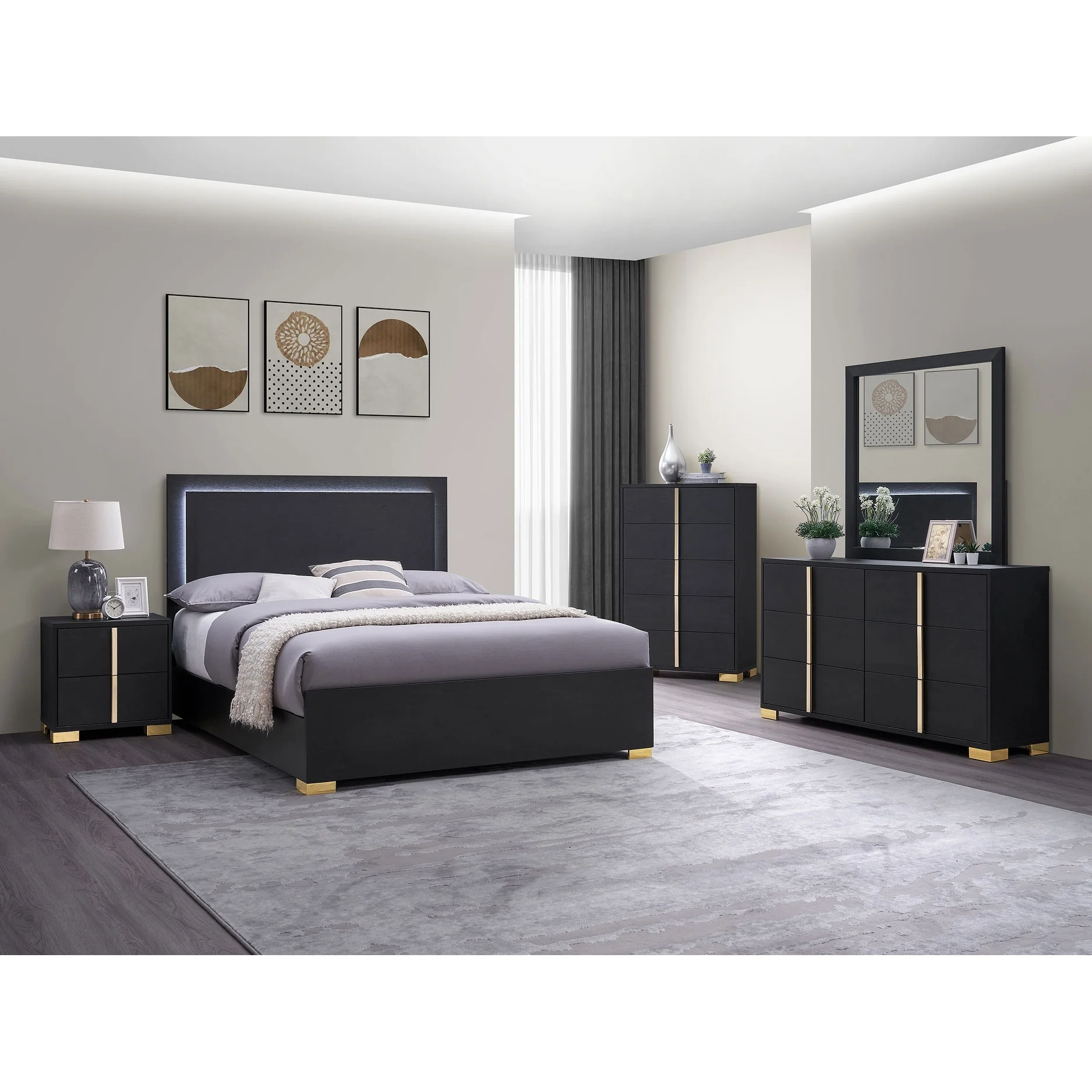 Marceline 5-Piece Panel Bedroom Set with LED Headboard