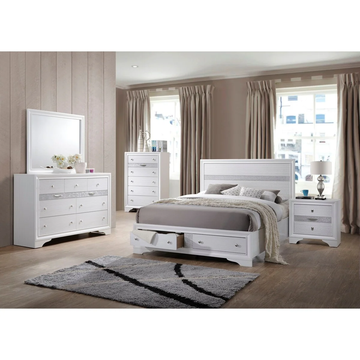 Everdeen 4 Piece Gray Panel Bedroom Set