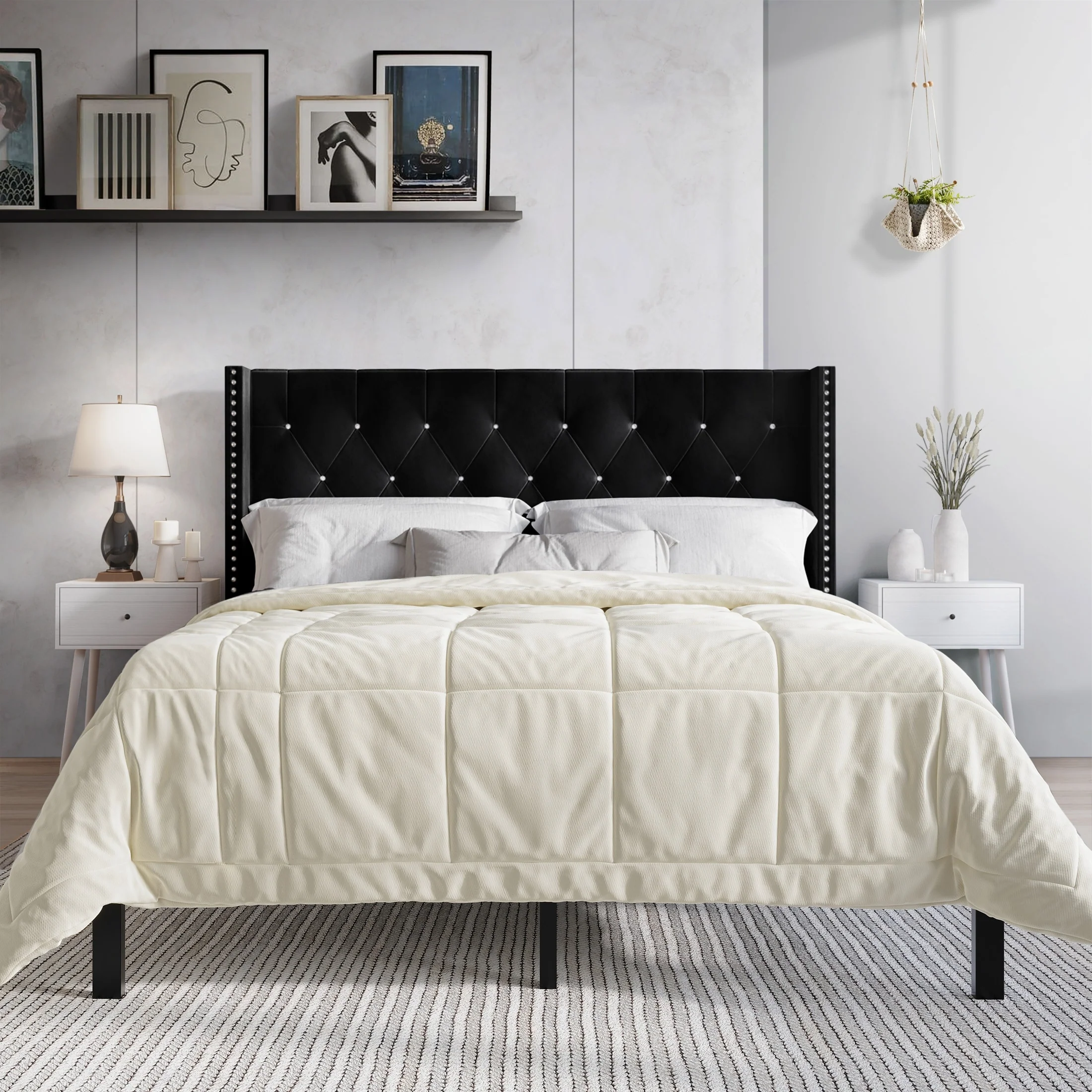 CraftPorch 3 Piece Bedroom Nightstands Set Wingback Tufted Bed