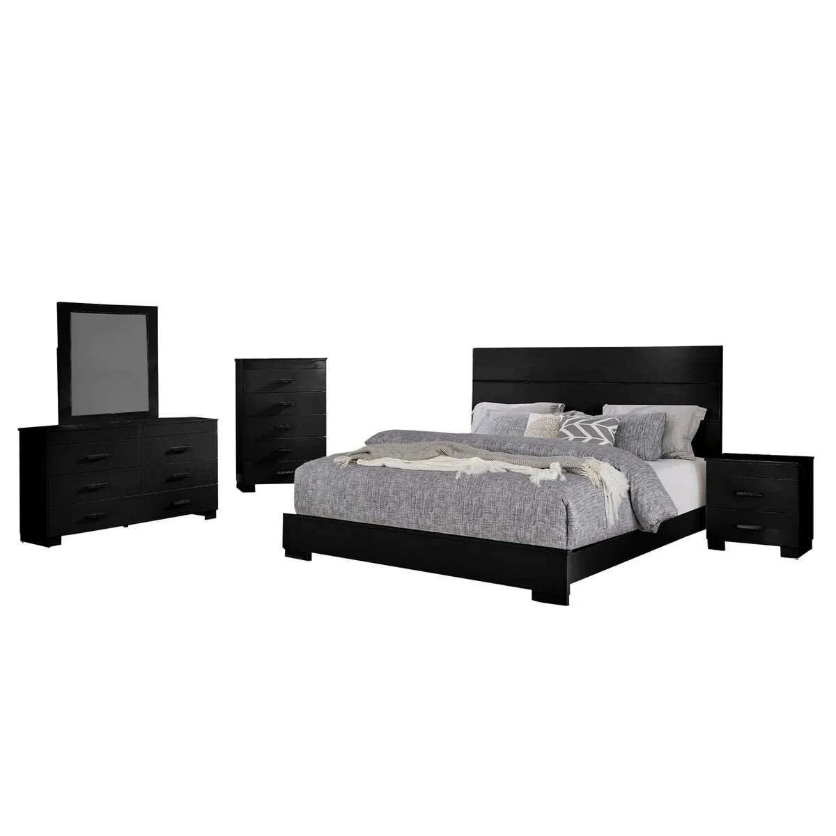 Contemporary 5 Piece Glossy Wooden Queen Bedroom Set, Black