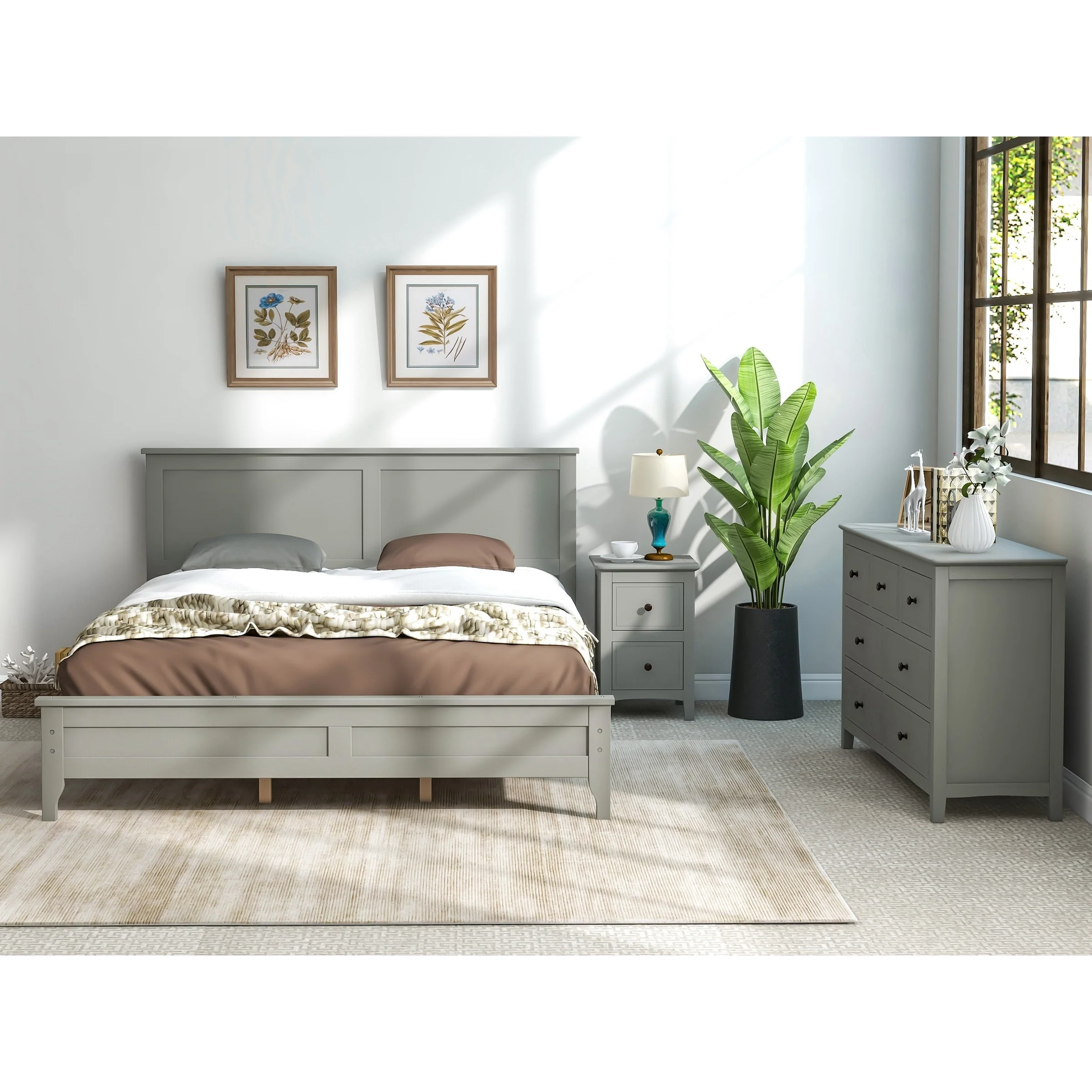 Gray Solid Wood 3 Pieces Bedroom Sets