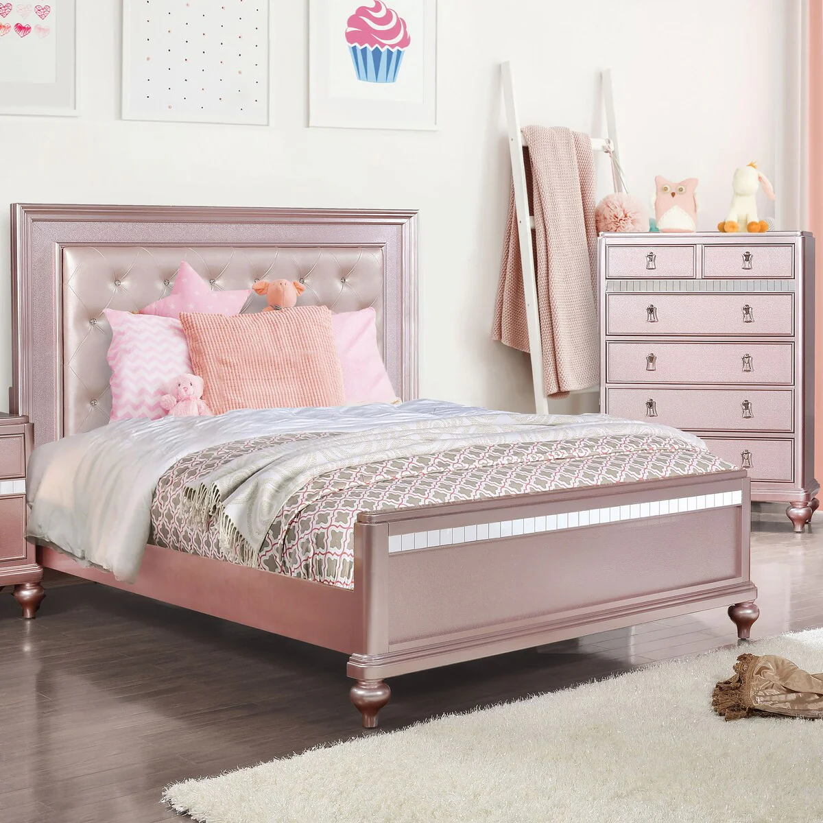 Luxurious Tufted White Bedroom Set