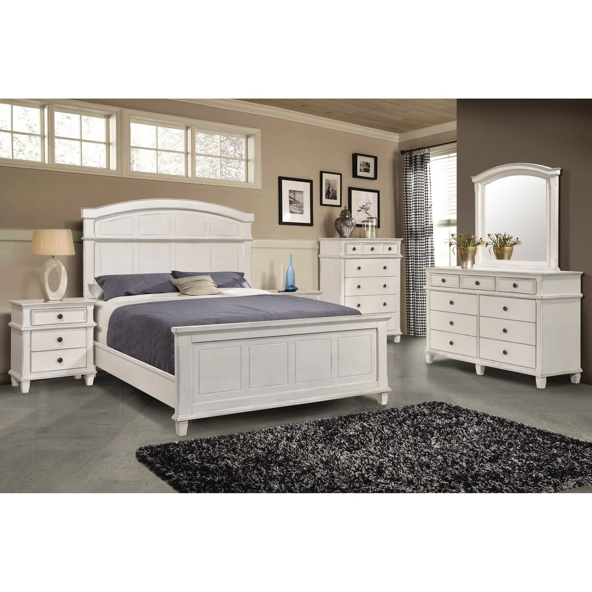 Salinas Antique White 5-piece Panel Bedroom Set with 2 Nightstands
