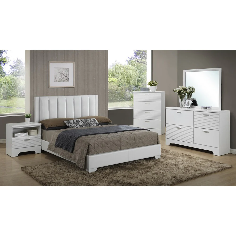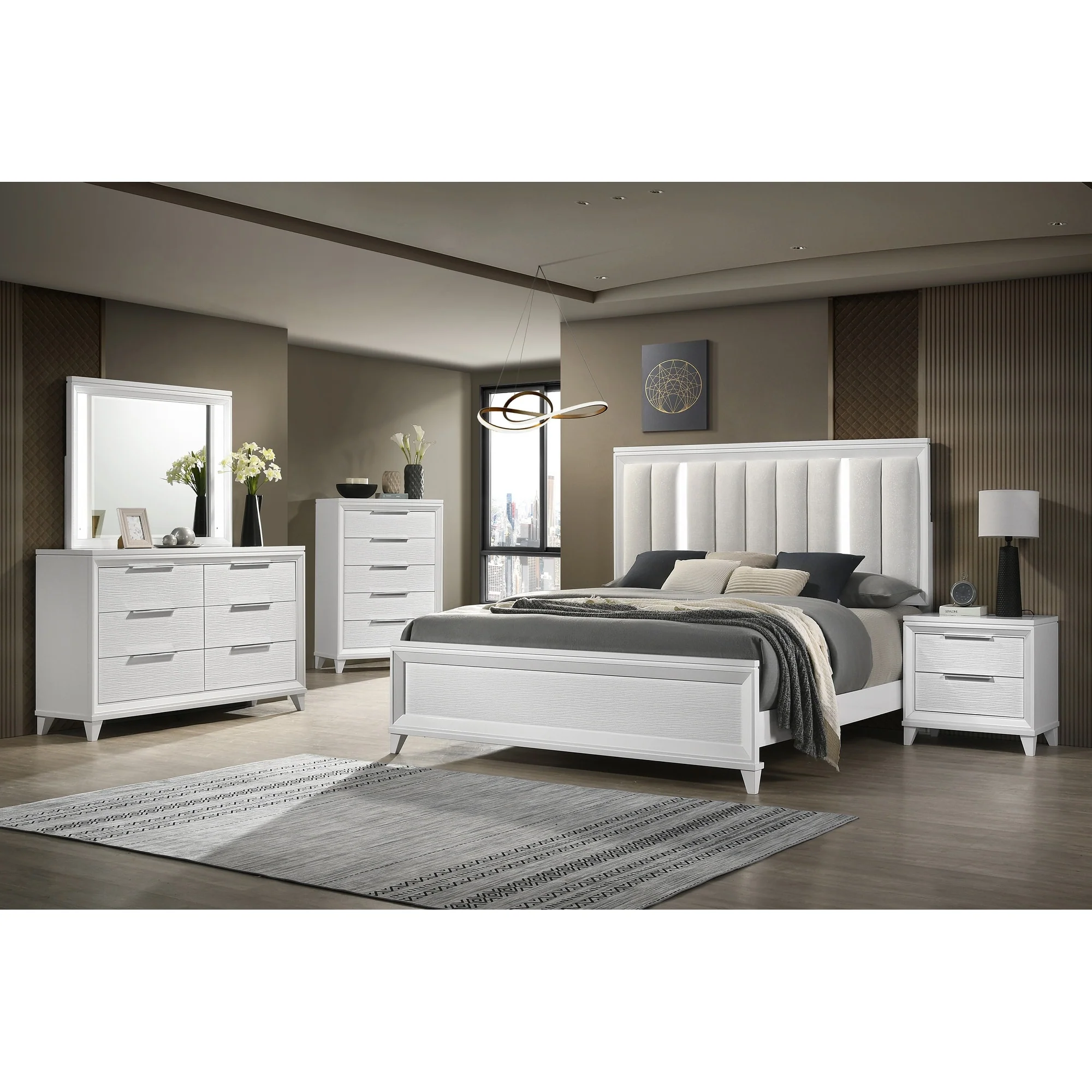 Denissa 6 Piece White Upholstered LED Panel Bedroom Set