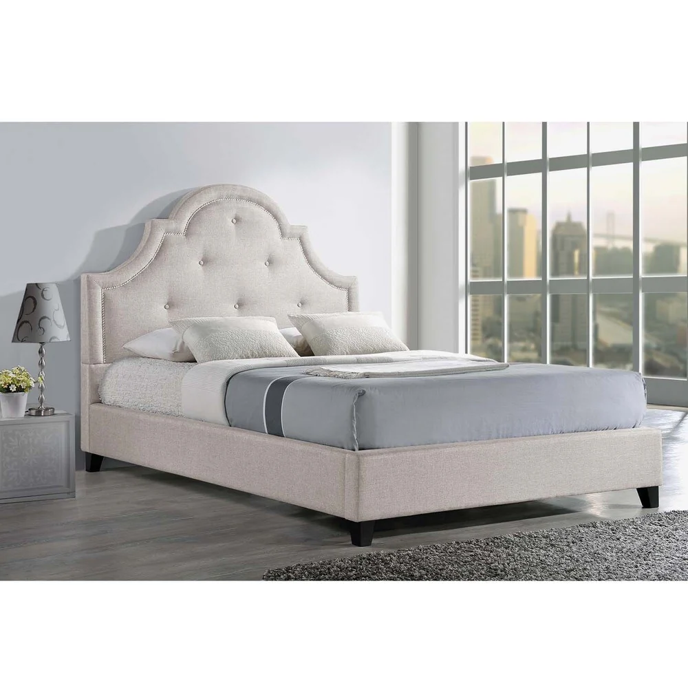Baxton Sudio Hamlin Light Beige Linen King Bed with Bed Bench
