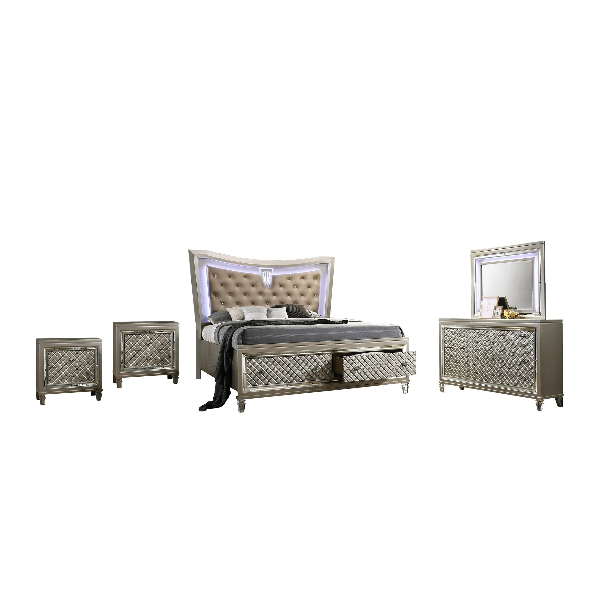 Milano 4-Piece Bedroom Set with Floating Nightstand Extension Panel