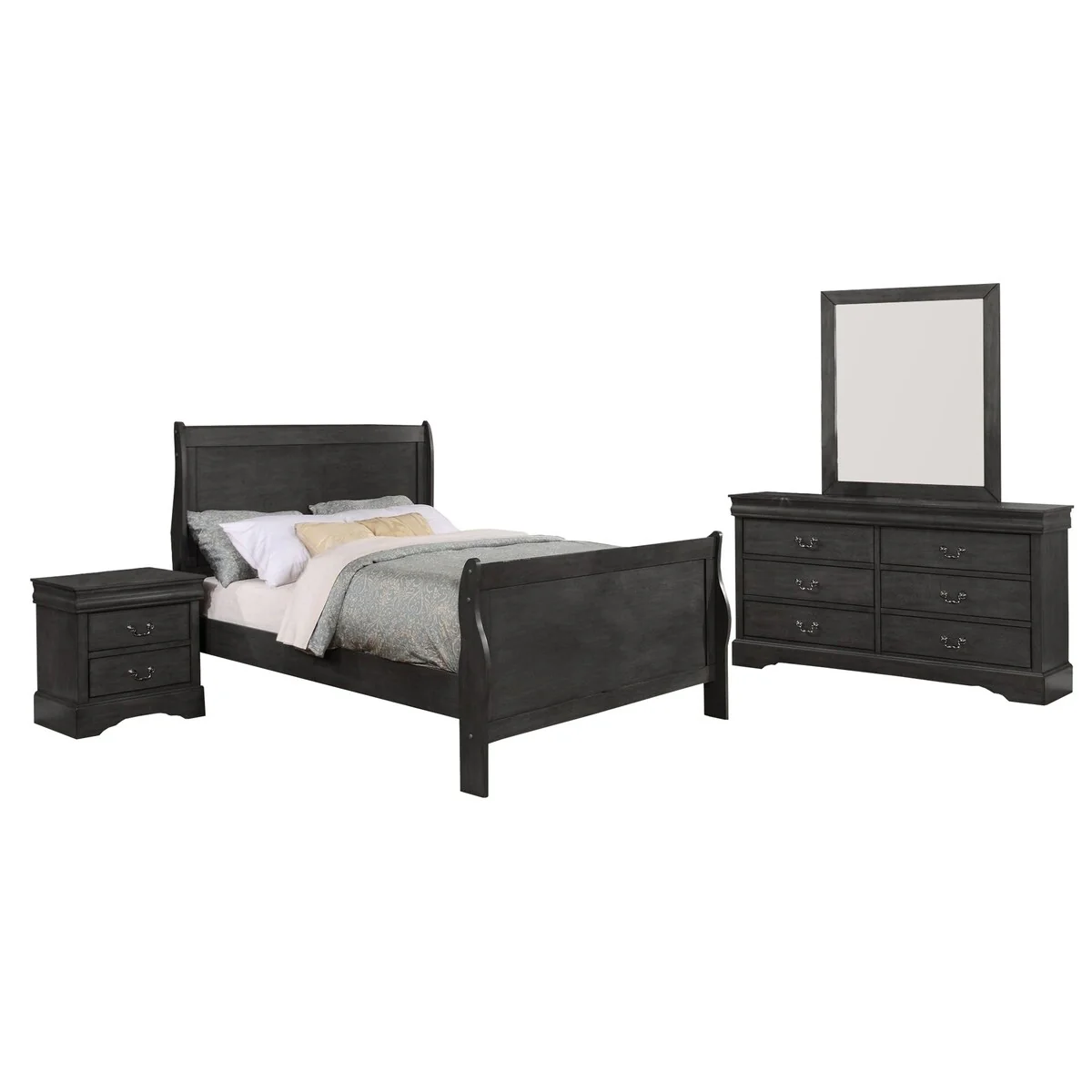 Traditional 4 Piece Wooden Twin Sleigh Bedroom Set, Gray
