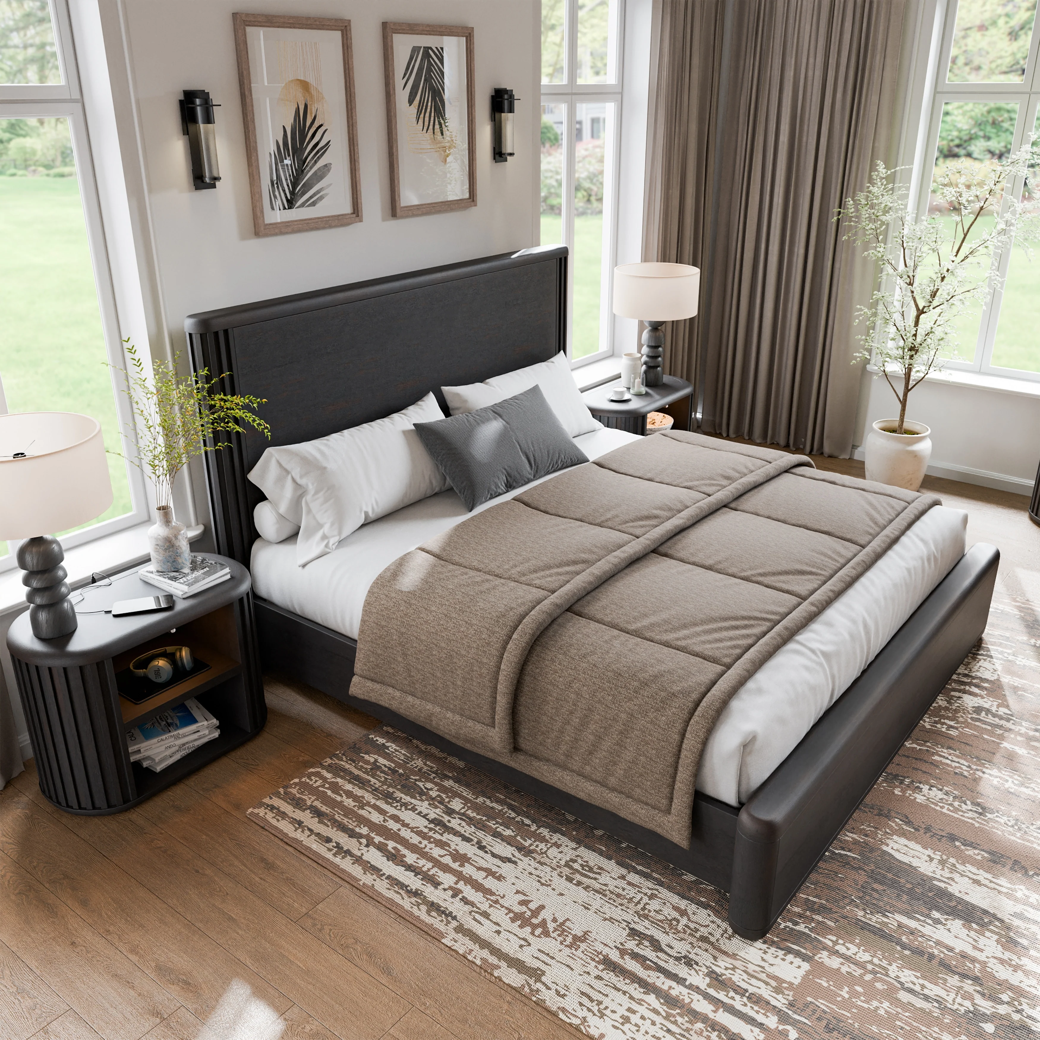 Porch & Den Augustine Dark Grey Oak 4-Piece Bedroom Set