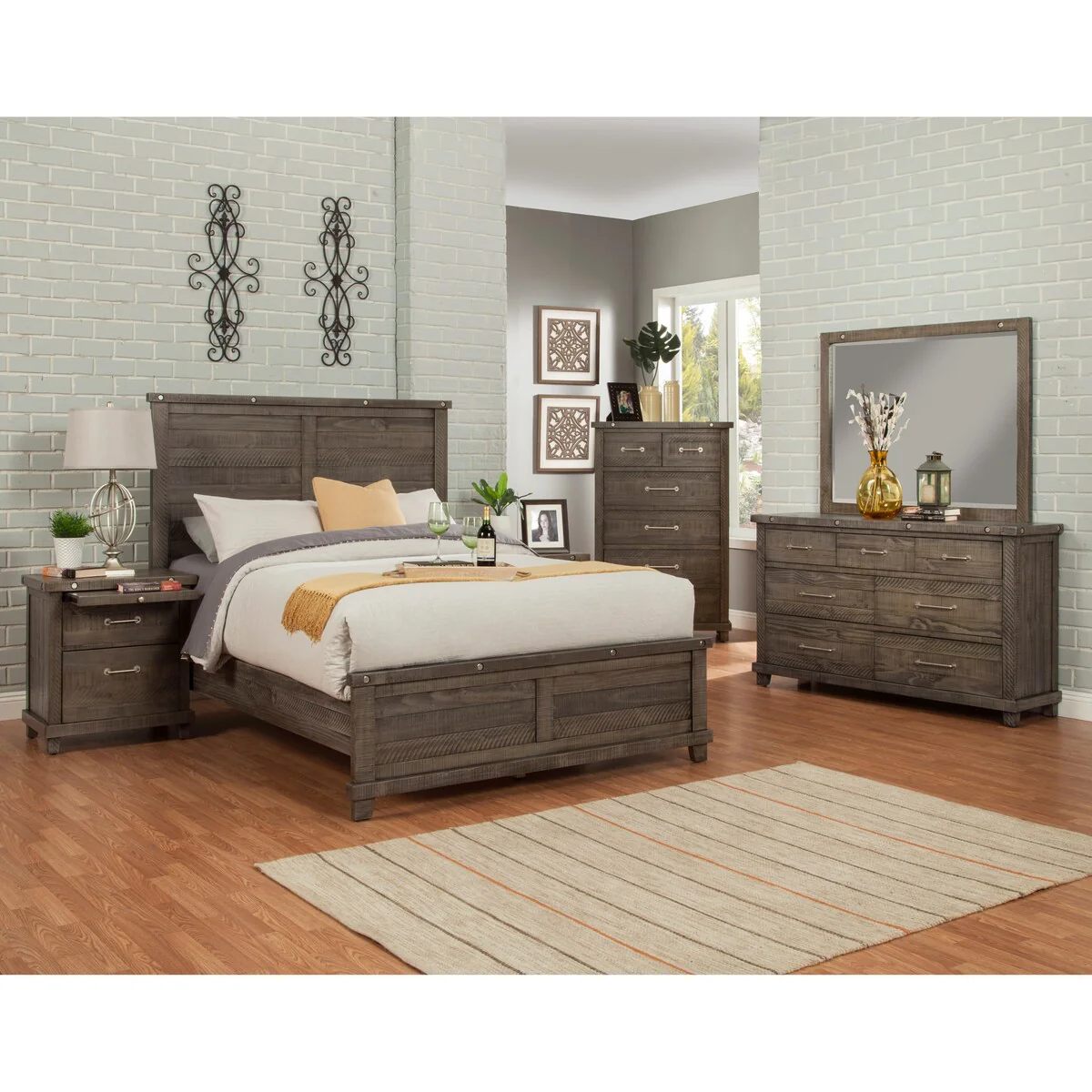 Vilo Home Industrial Charms Gray Distressed 5 Piece Bedroom Set