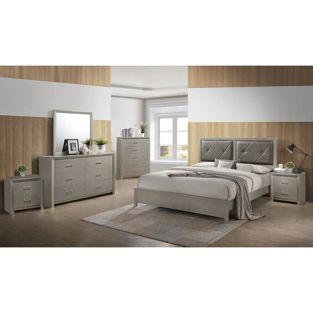 Best Quality Furniture Champagne Metallic 6-piece Bedroom Set