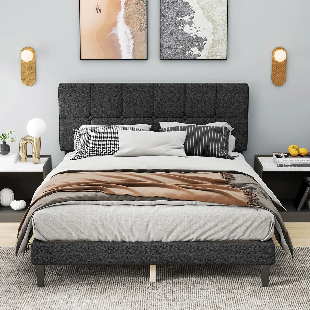 Panel Tufted Platform Bed and Memory Foam Pocket Spring Mattress