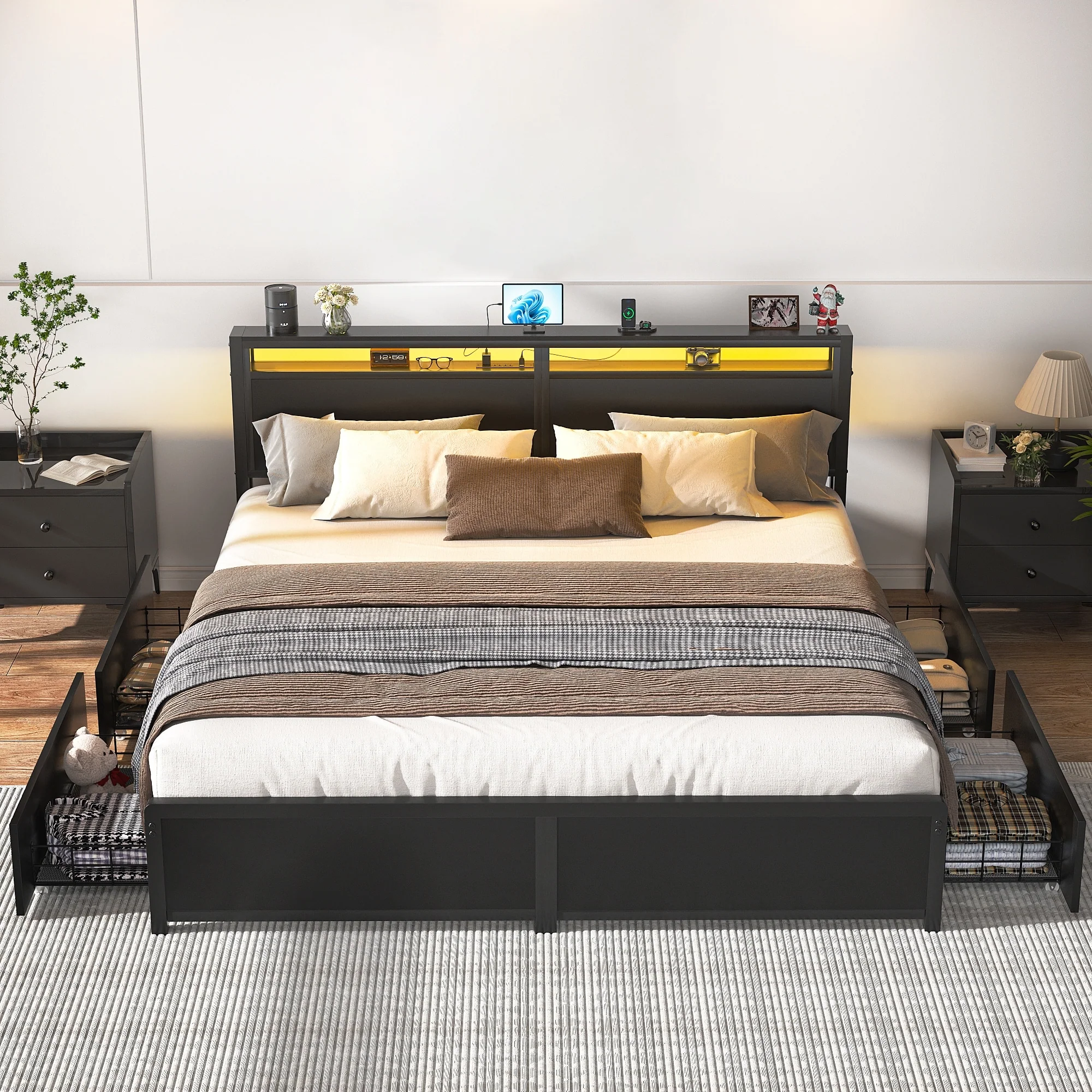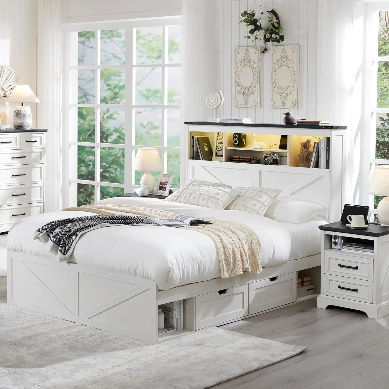 Mixoy Platform Bed Frame with Storage Drawers & Slat Support