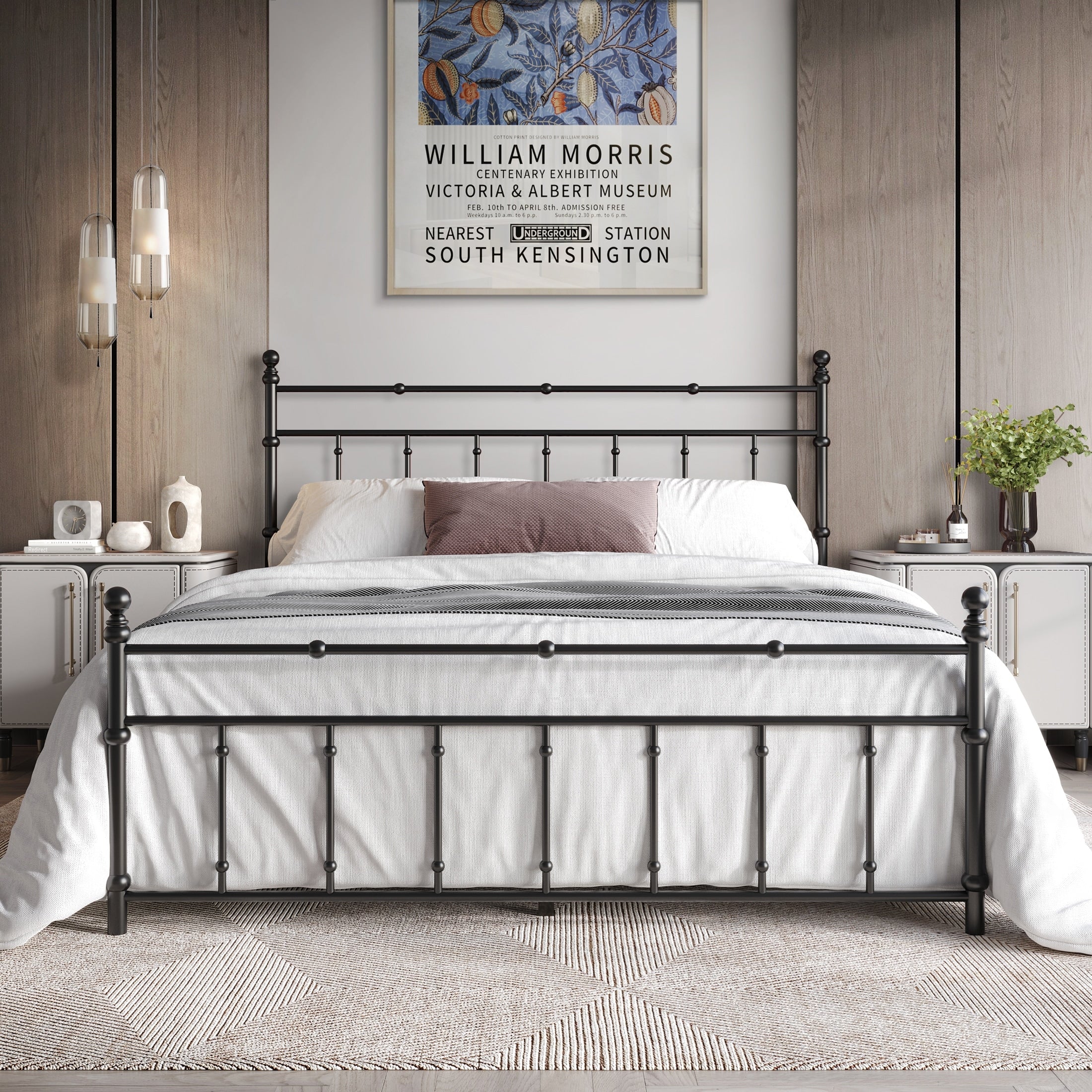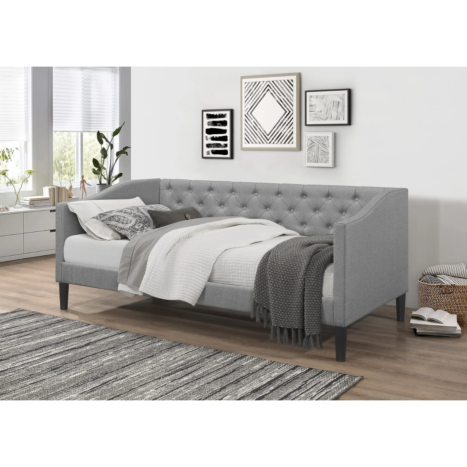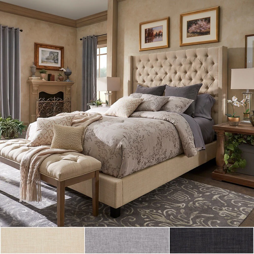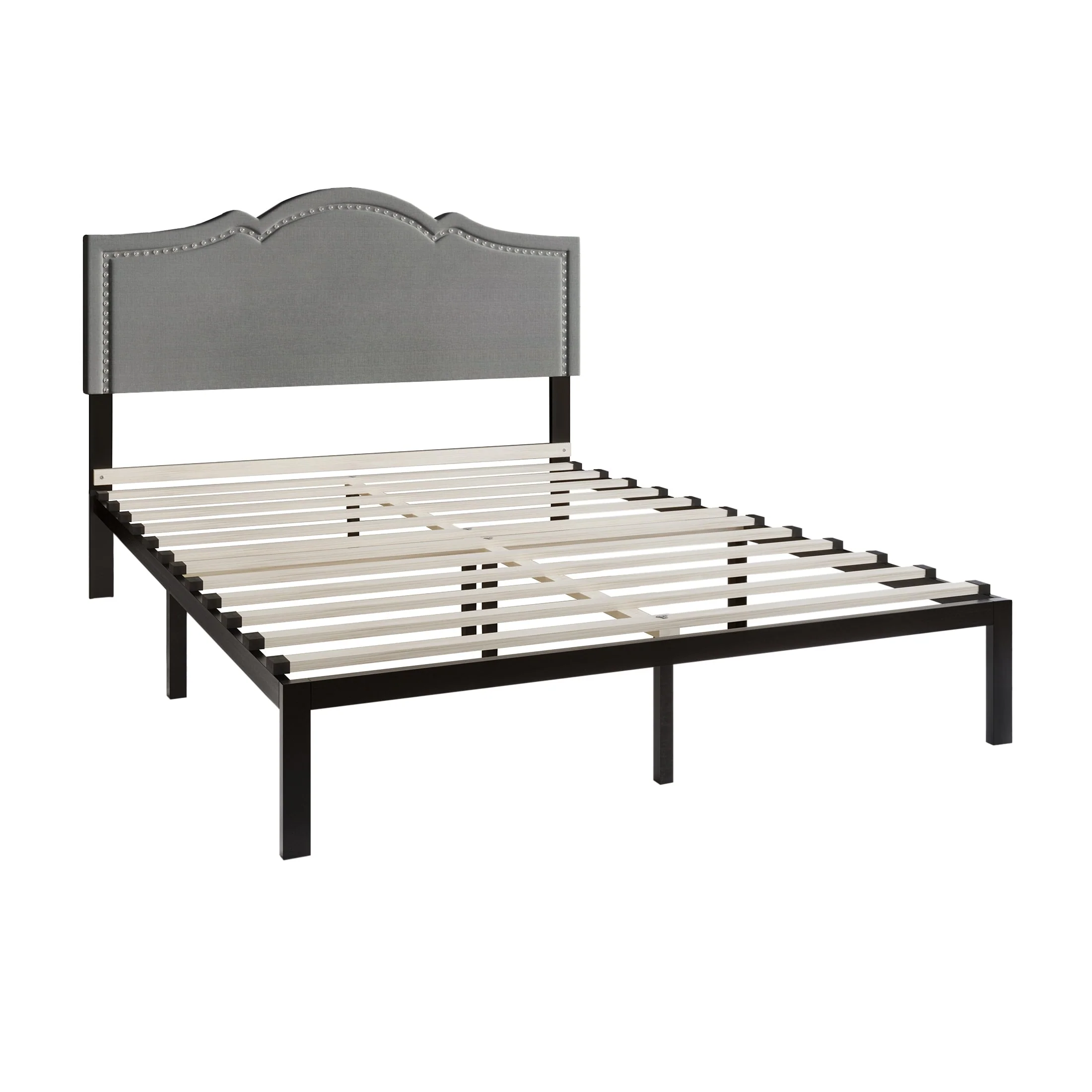 CraftPorch Elegant Linen Nailhead Upholstered Platform Bed
