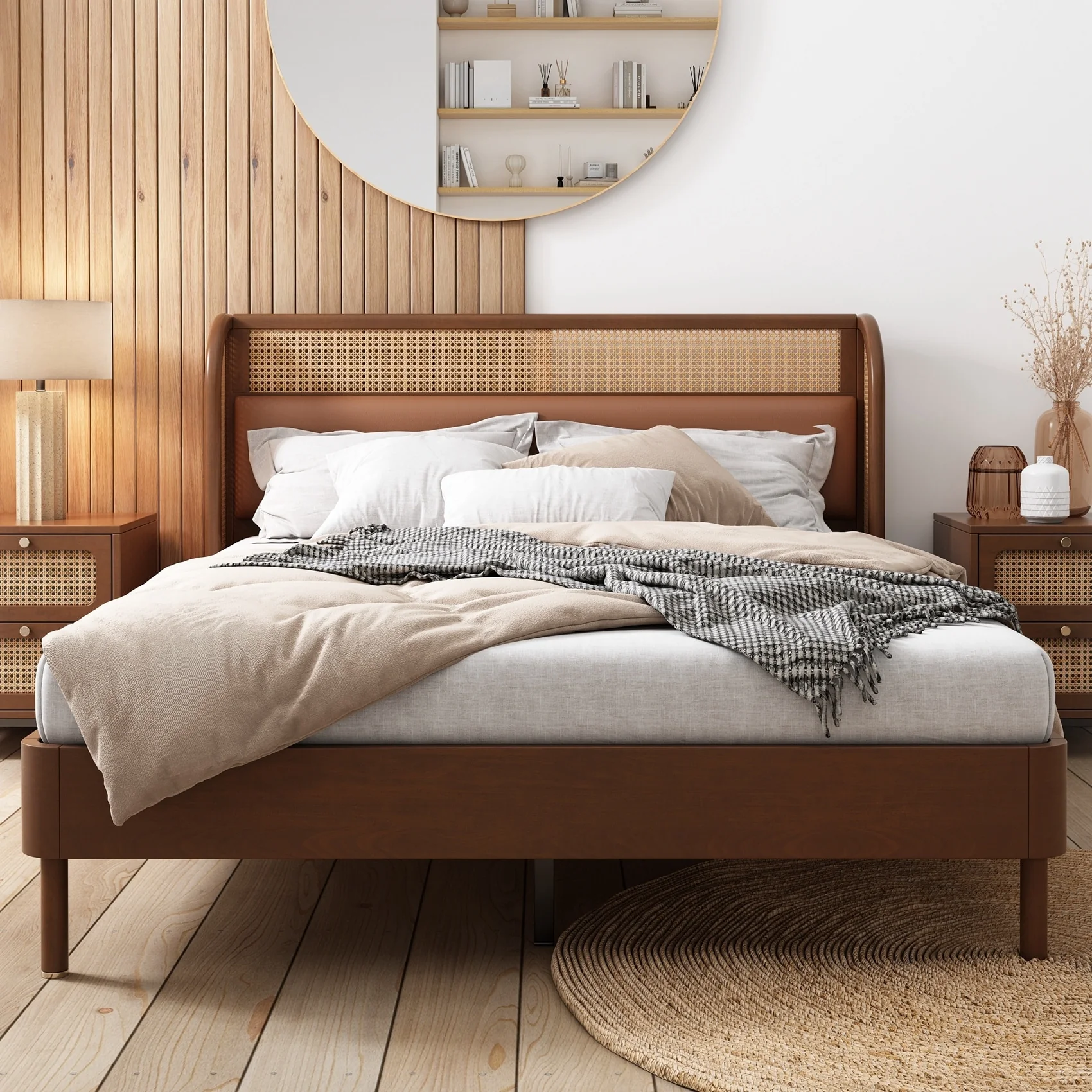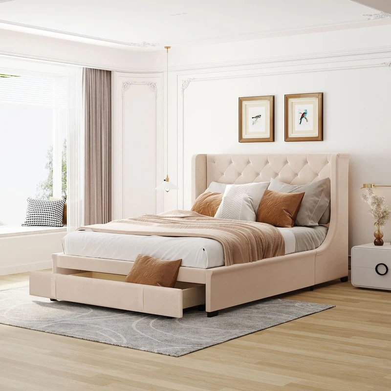 Queen Size Platform Bed with Wingback Headboard and a Big Drawer