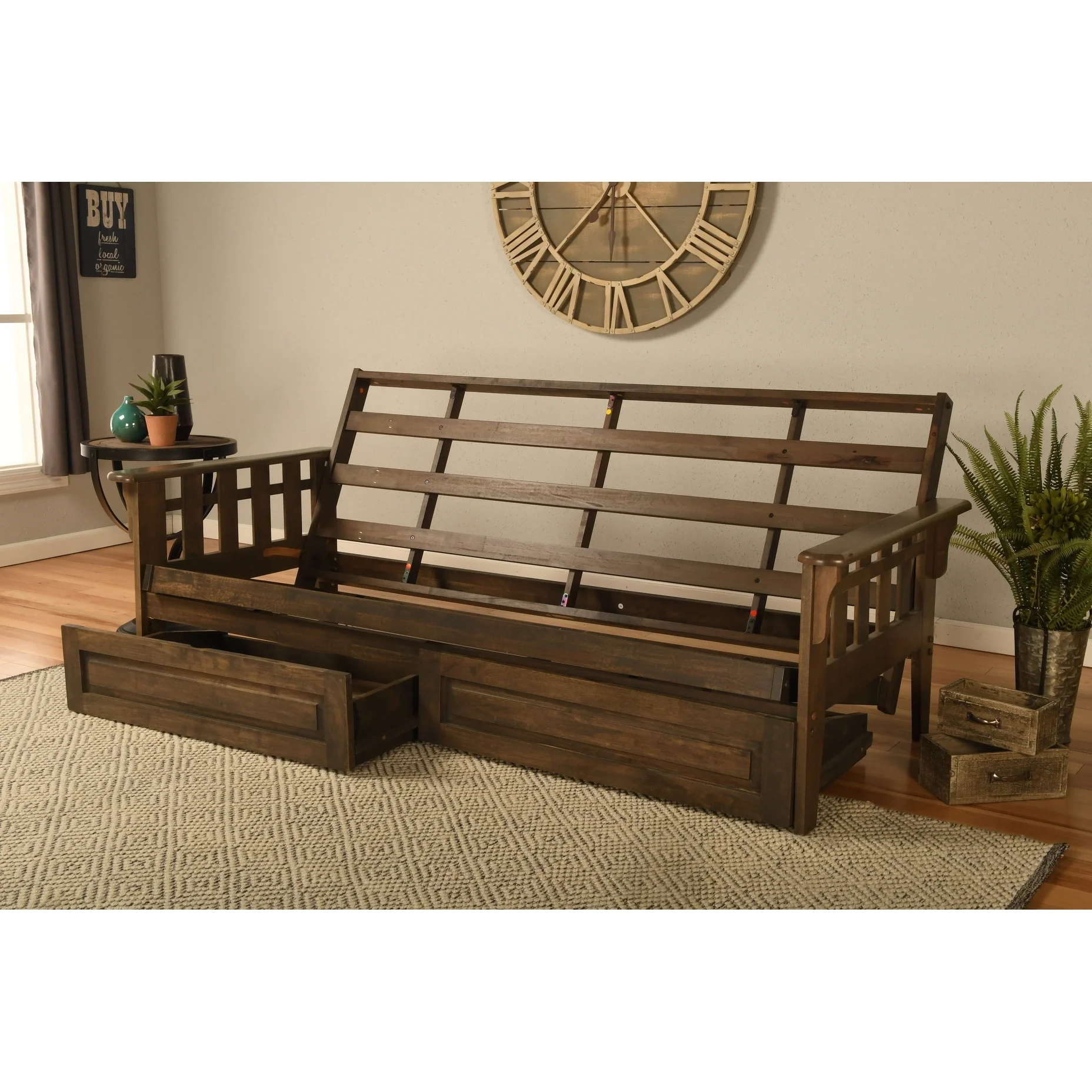 Plank and Beam Queen Bed with Storage Drawers and Slat Headboard
