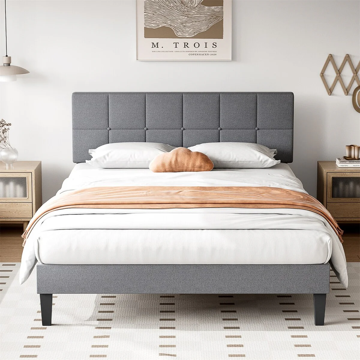 Nova Domus Santa Barbara Modern Grey Fabric & Natural Bed