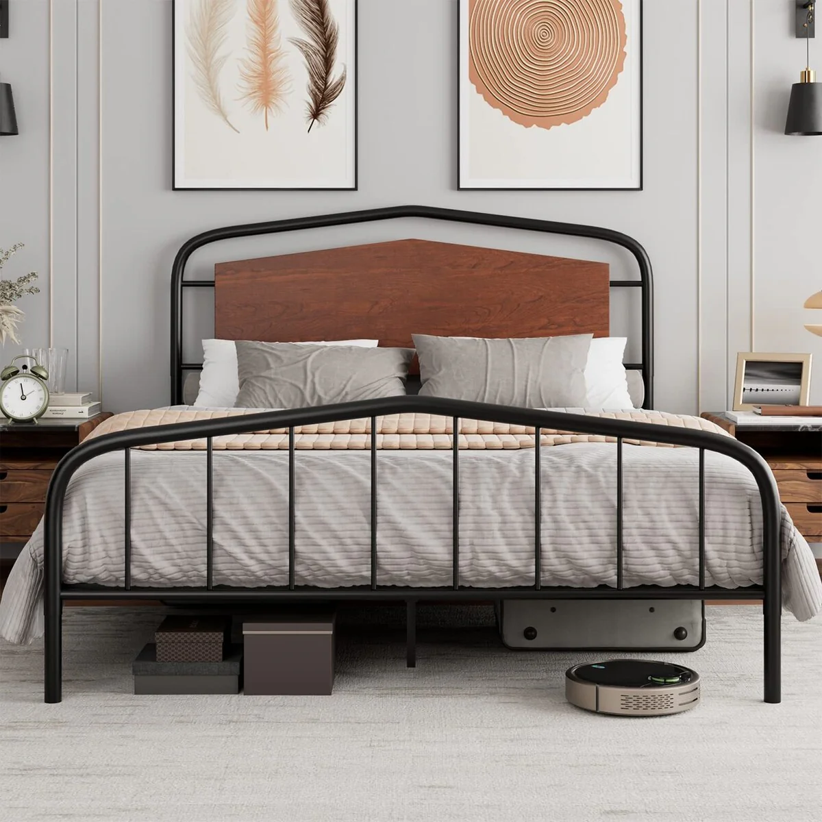 Bed Frame with Wooden Headboard and Footboard