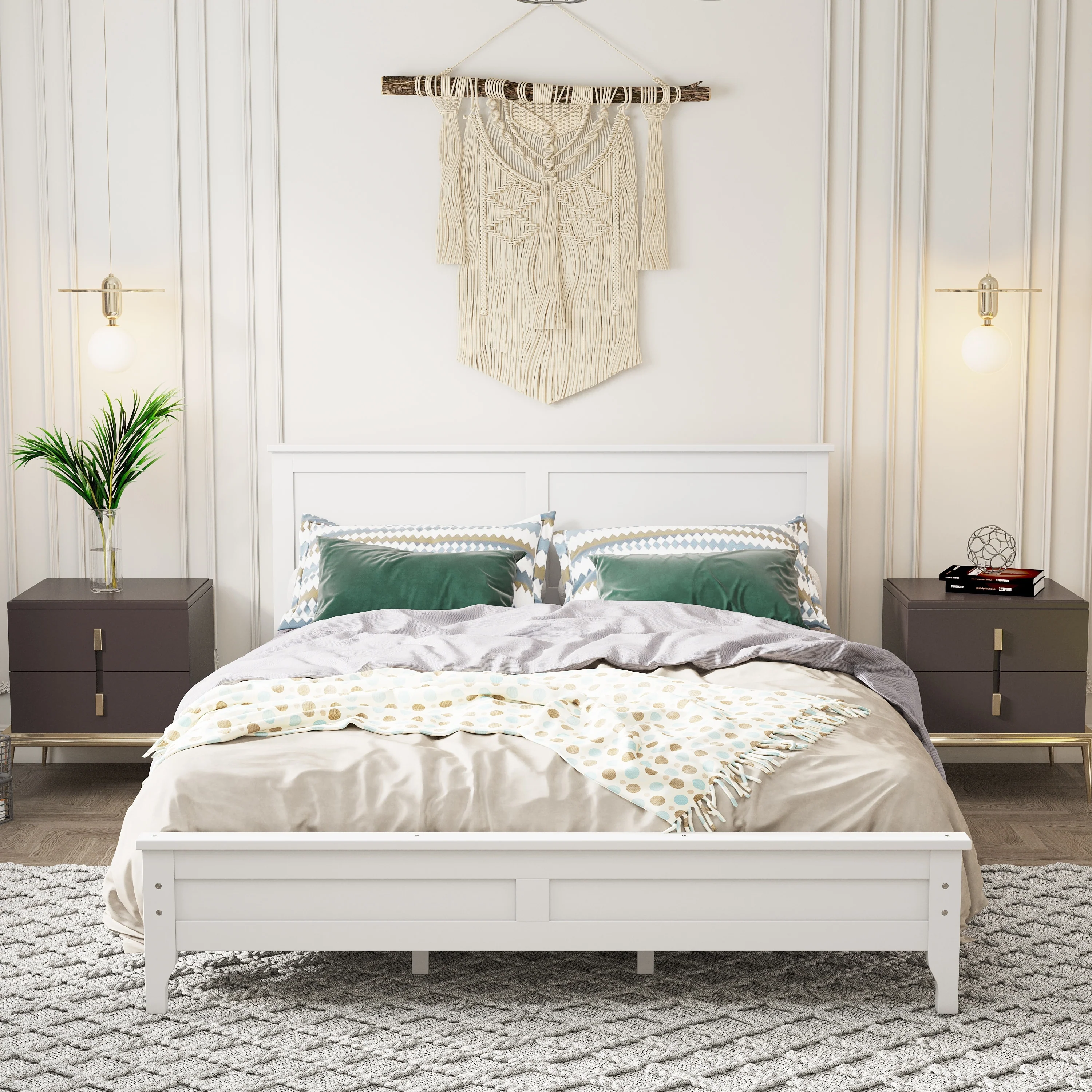 Full Size White Solid Wood Platform Bed with Drawers