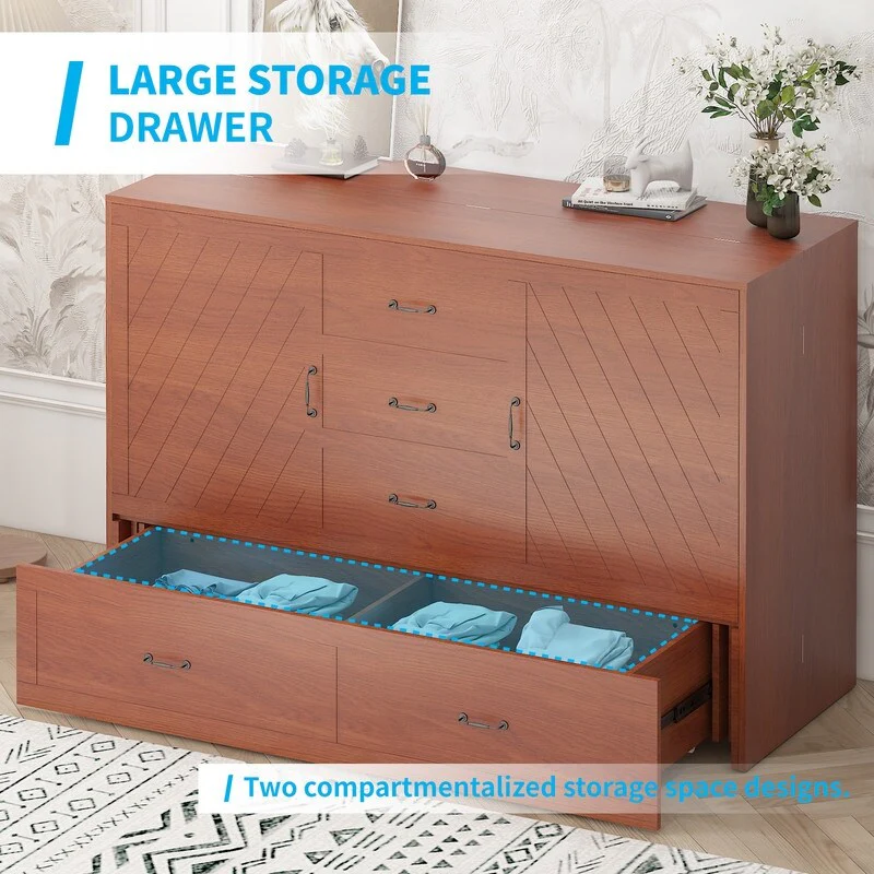 Mixoy Murphy Bed Cabinet Chest with Mattress & Storage Platform