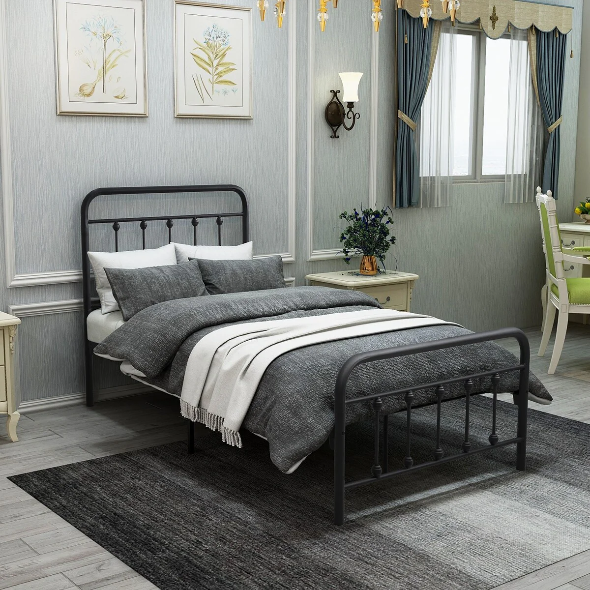 Twin Metal Platform Bed Frame with Headboard