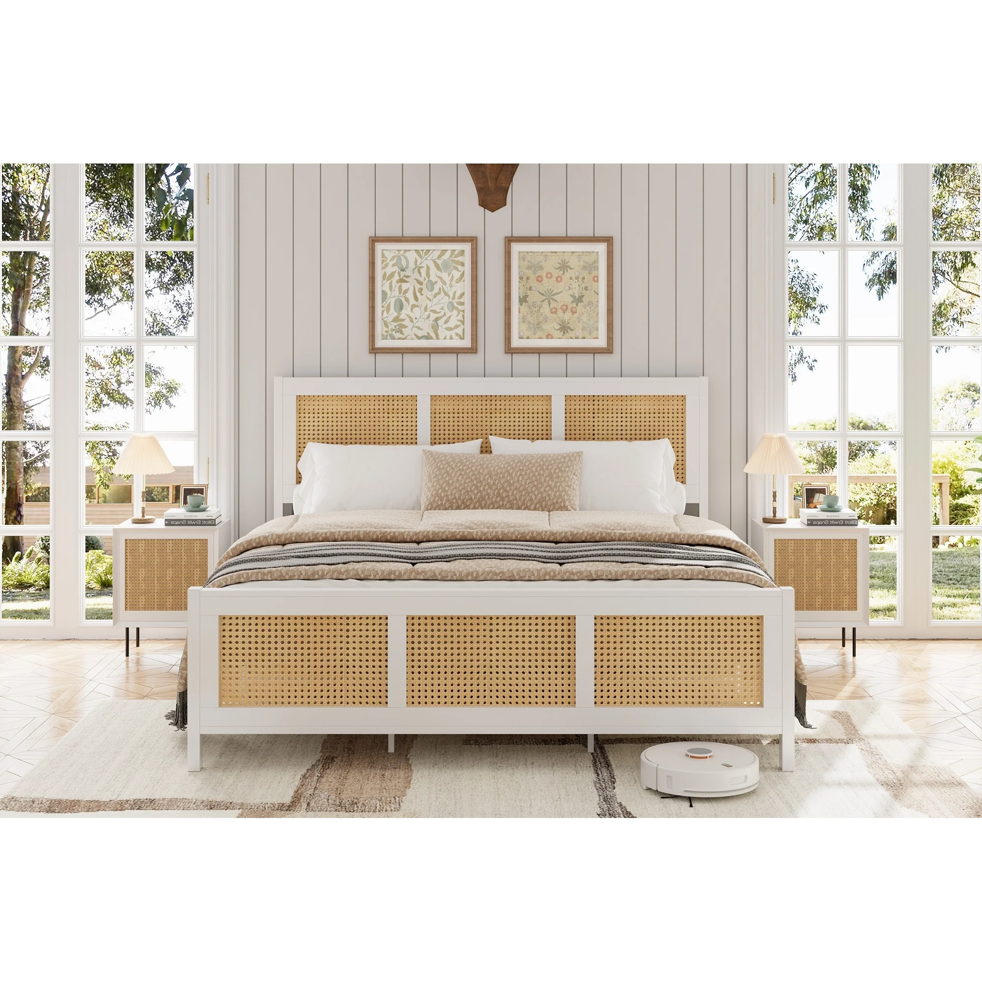 SAFAVIEH Masja White Washed Rattan Headboard (Full)