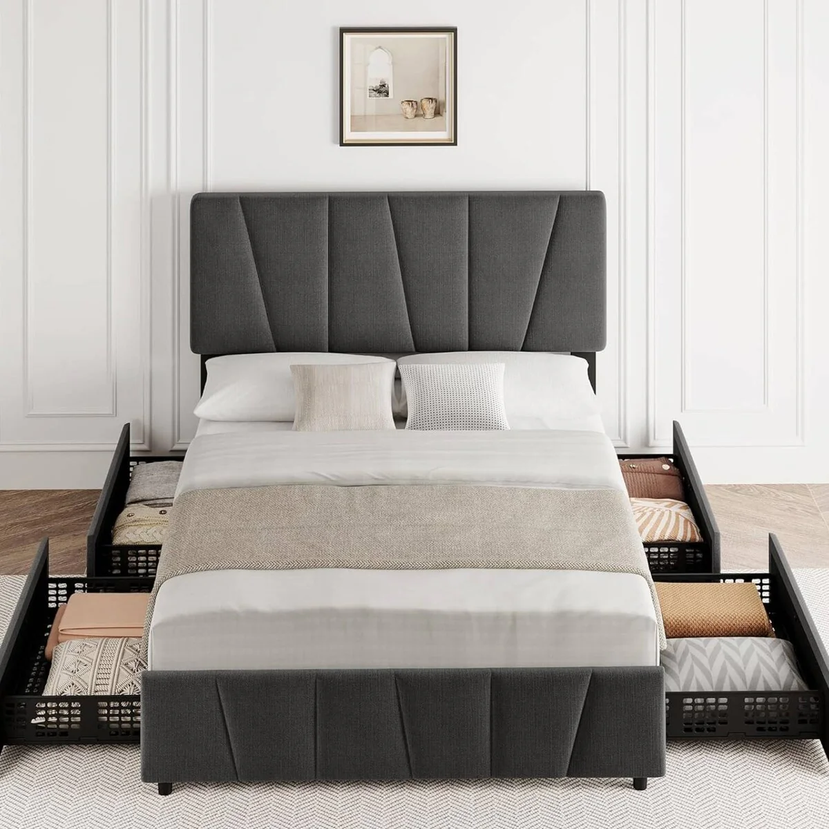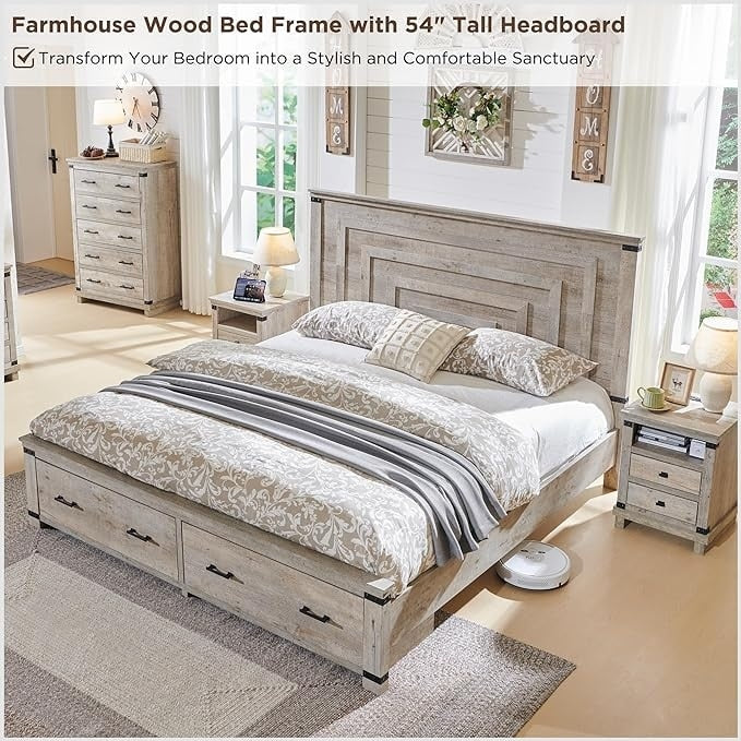 Moasis Queen Storage Upholstered Headboard Bed Frame