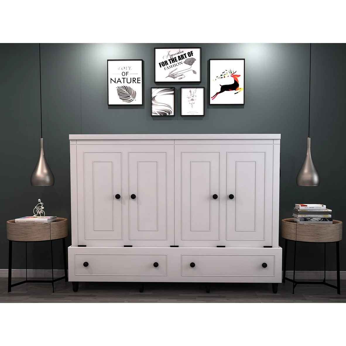 Henderson Queen Solid Wood Rolling Cabinet Bed with Mattress