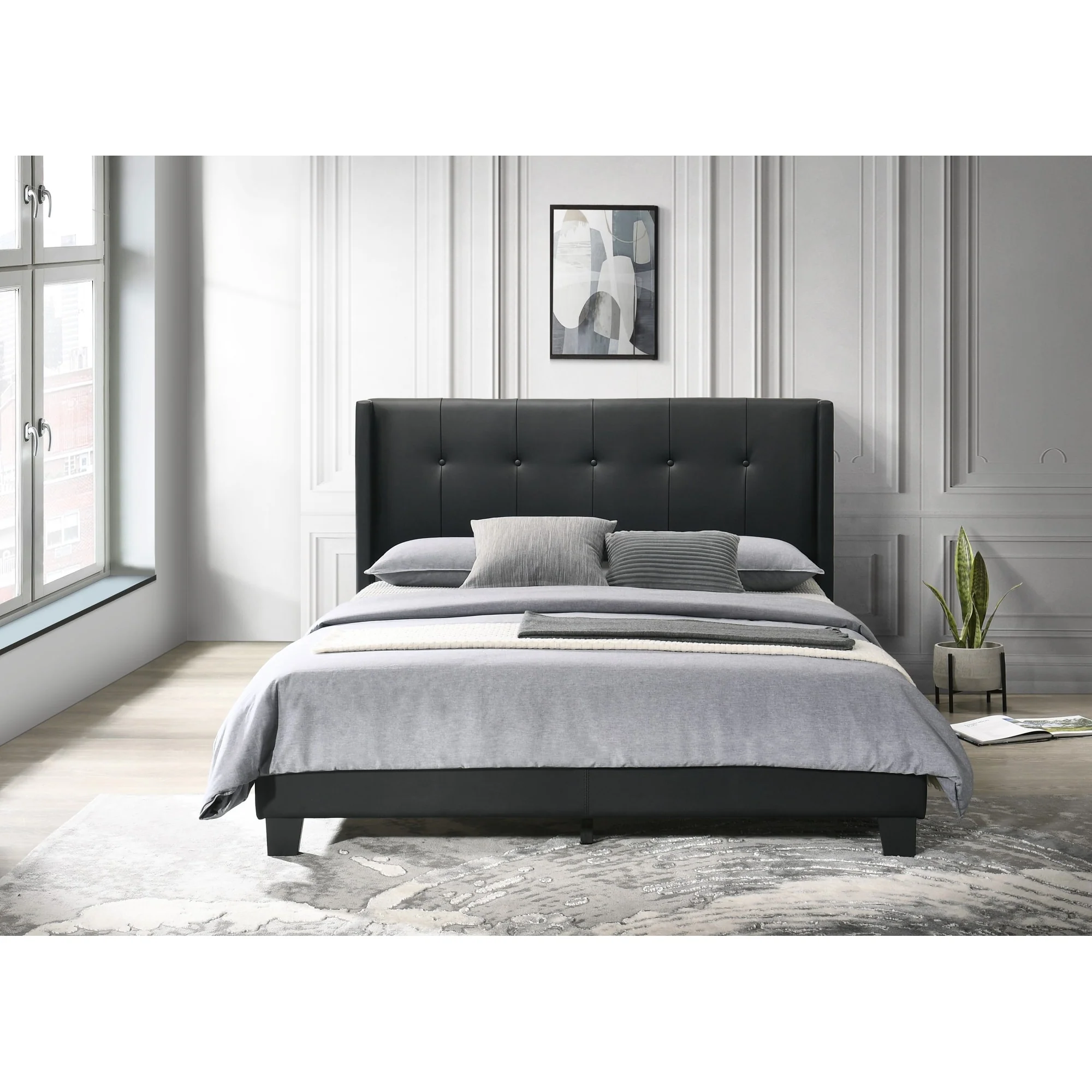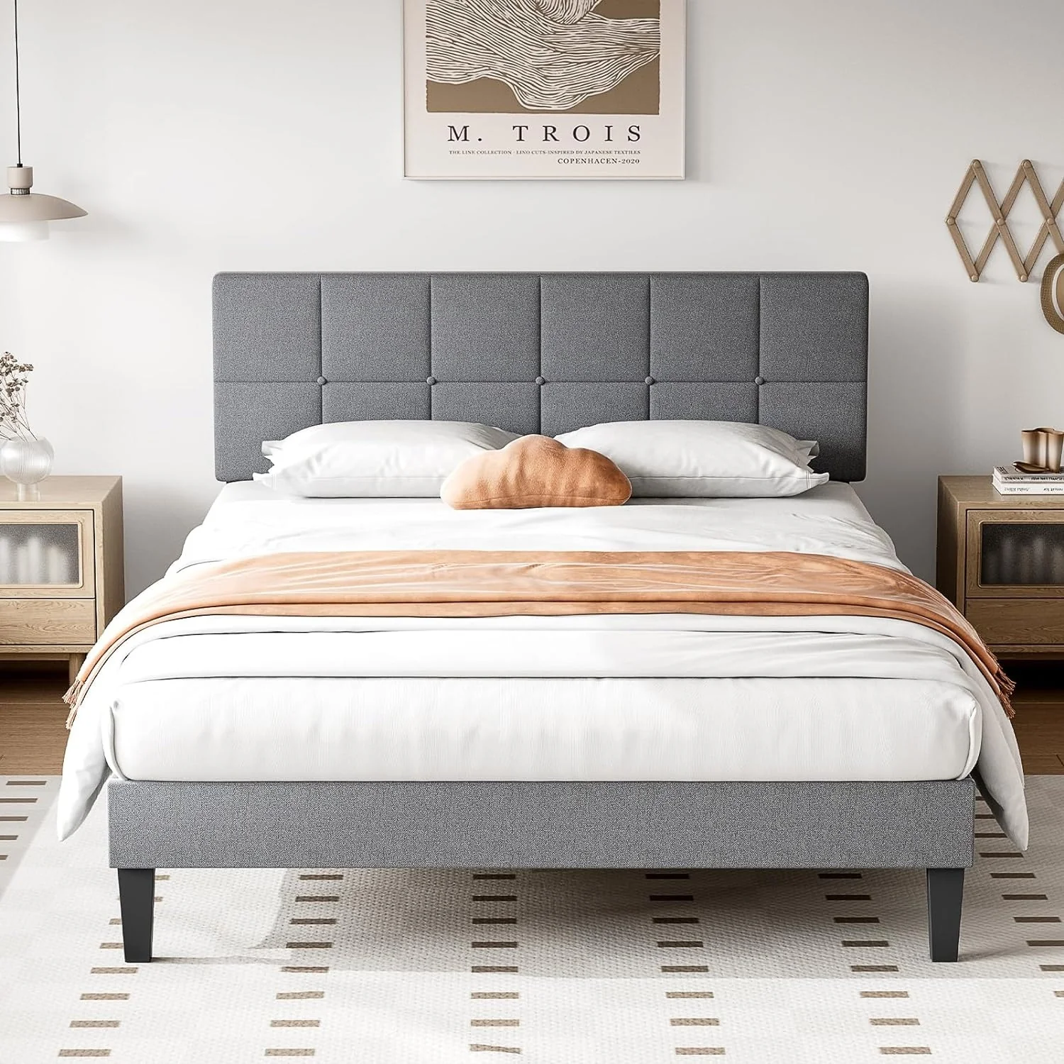 Billy Upholstered Panel Bed with 2 Nightstand