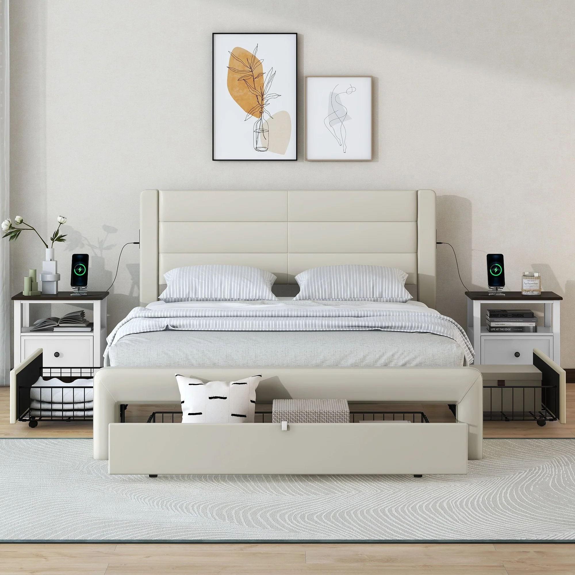 Queen Size Bed Frame with Drawers Storage