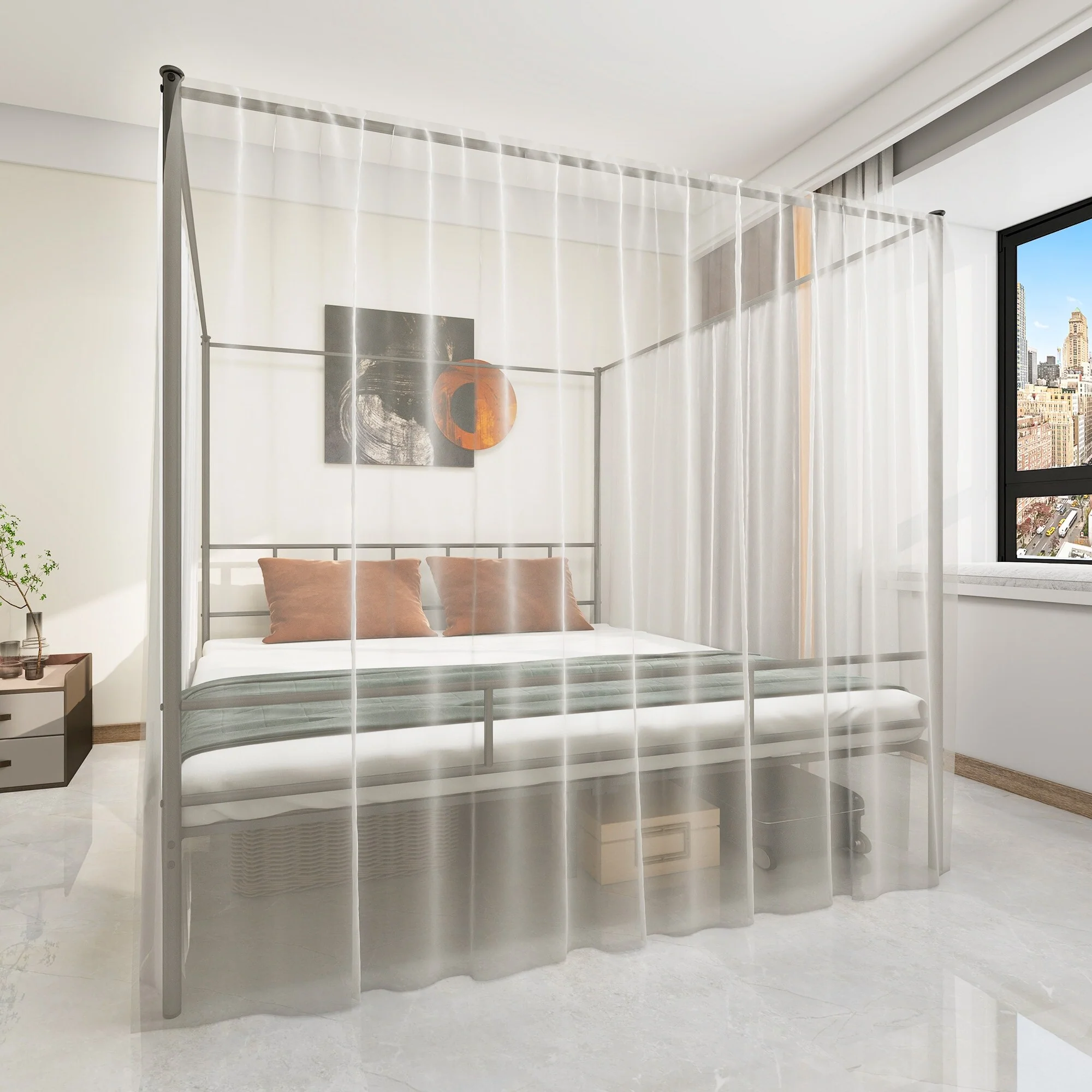 King Bed Frame Metal Canopy Four Poster Bed Frame