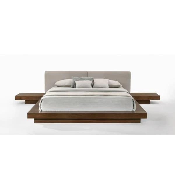 Modrest Tokyo Contemporary Walnut and Grey Platform Bed