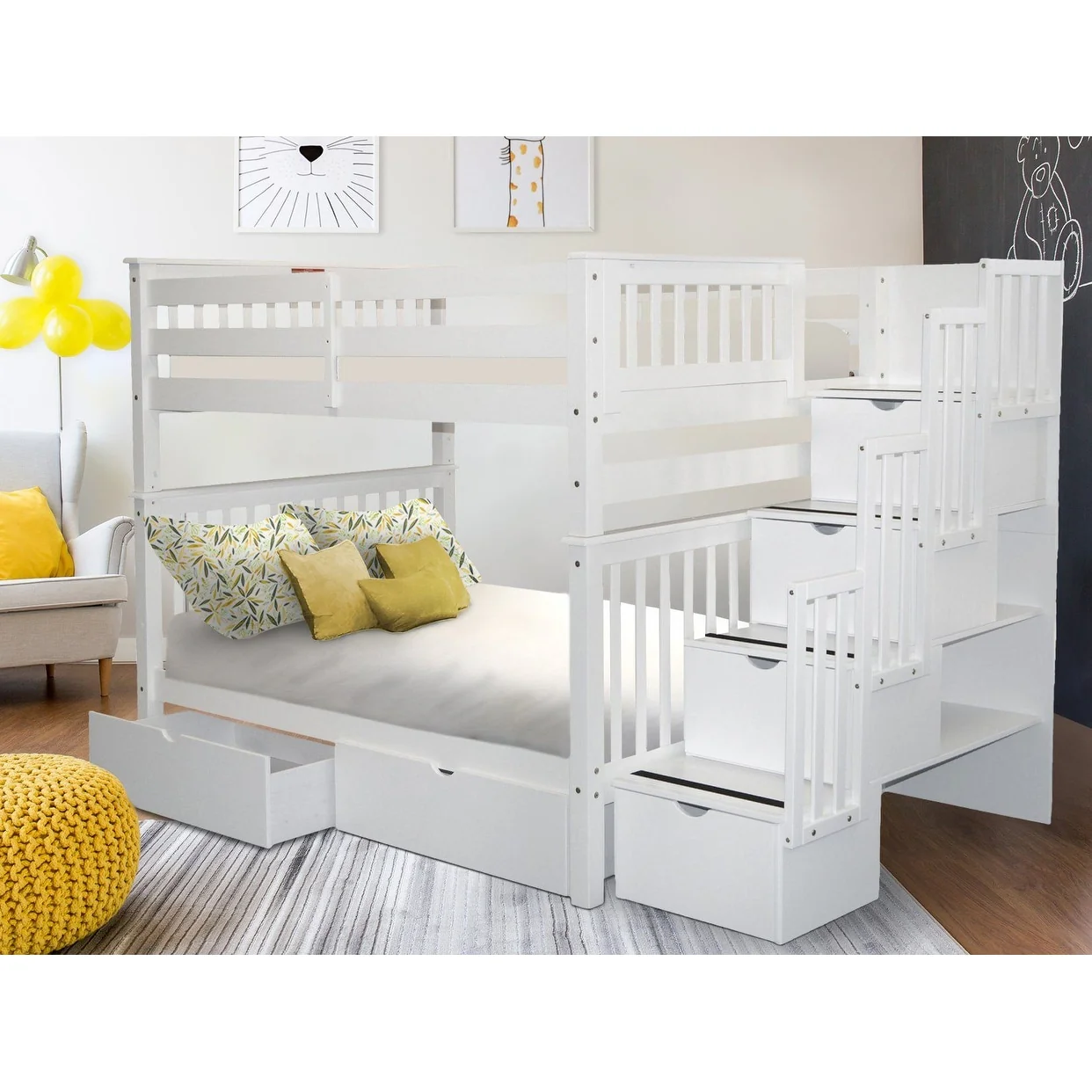 Taylor & Olive Trillium Full over Full Stairway Bunk Bed, 2 Drawers